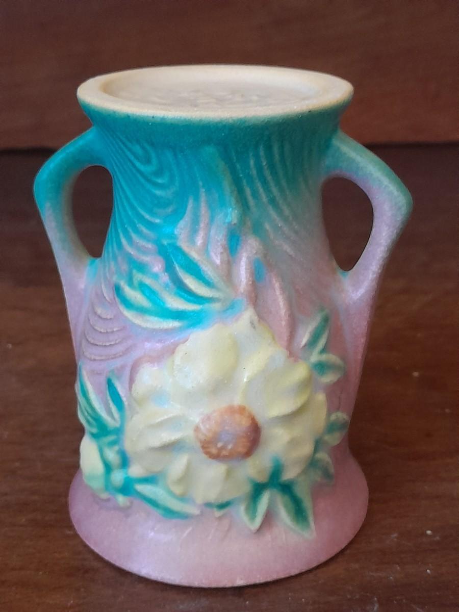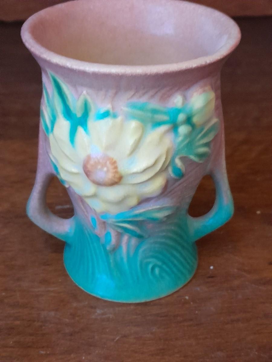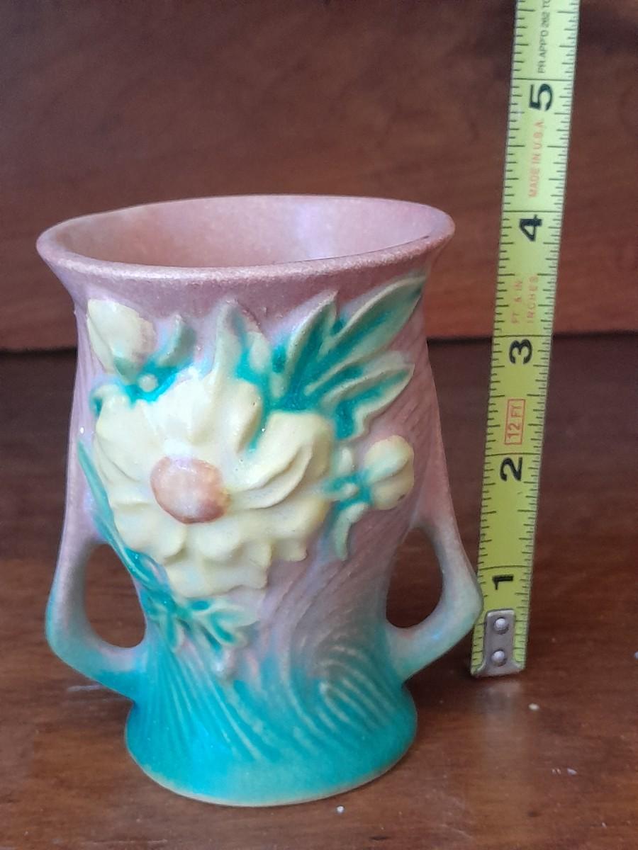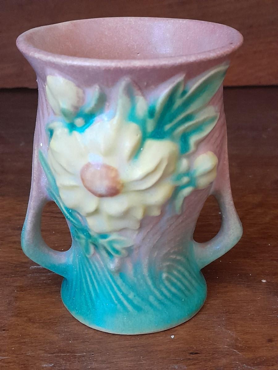 ROSEVILLE POTTERY AND MOTHER OF PEARL OPERA GLASSES WITH CASE
