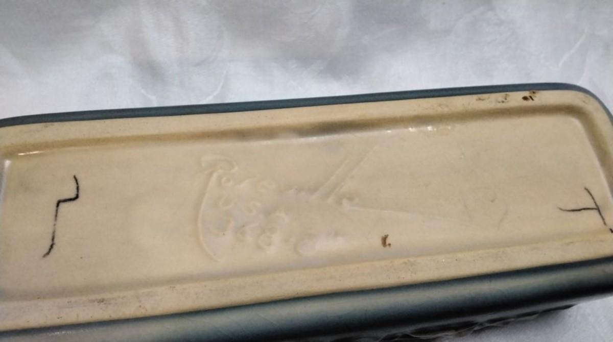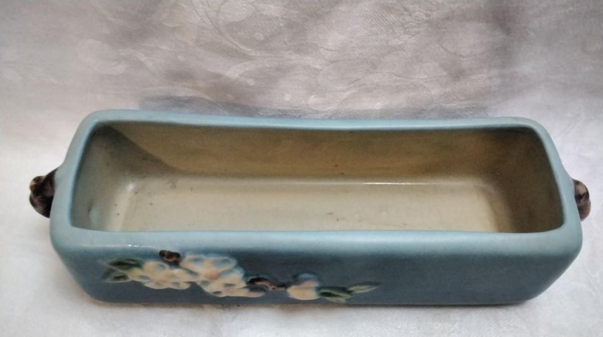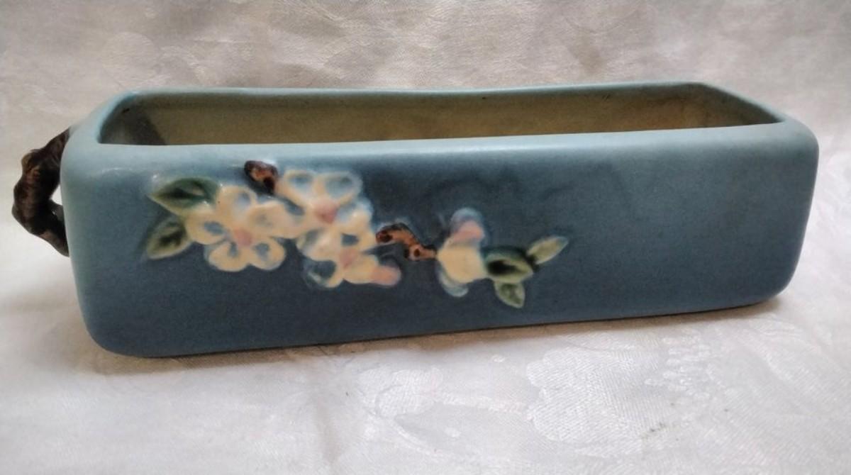 Roseville Pottery Blue Apple Blossom Planter Box 368-8