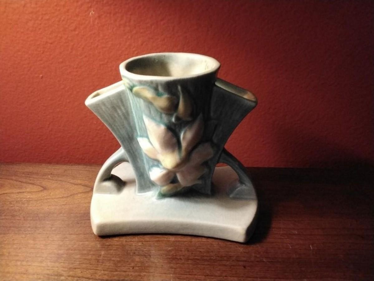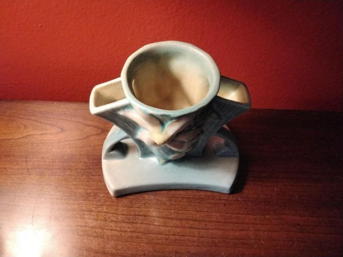 Roseville Pottery Blue Clematis Triple Vase - #192-5 Circa 1940's