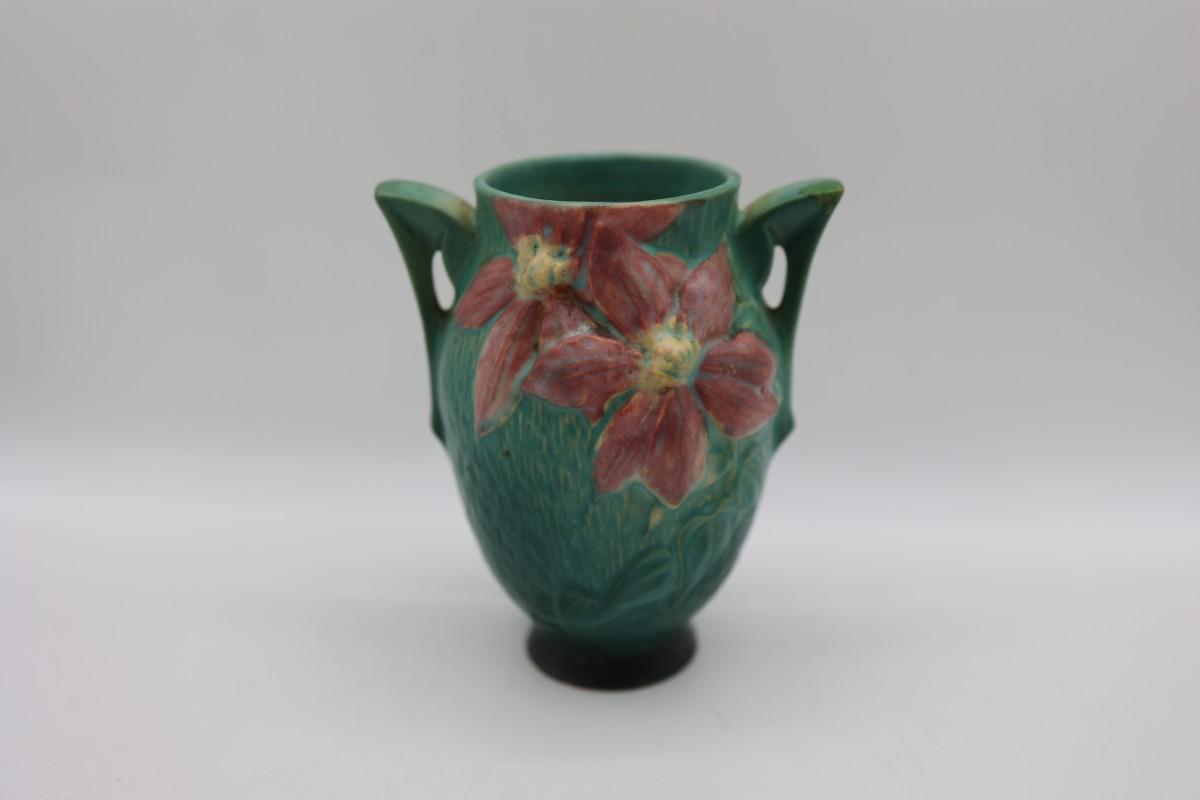 ROSEVILLE Pottery Clematis Double Handled Vase, Marked