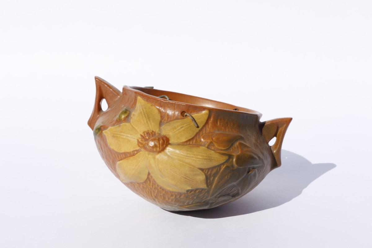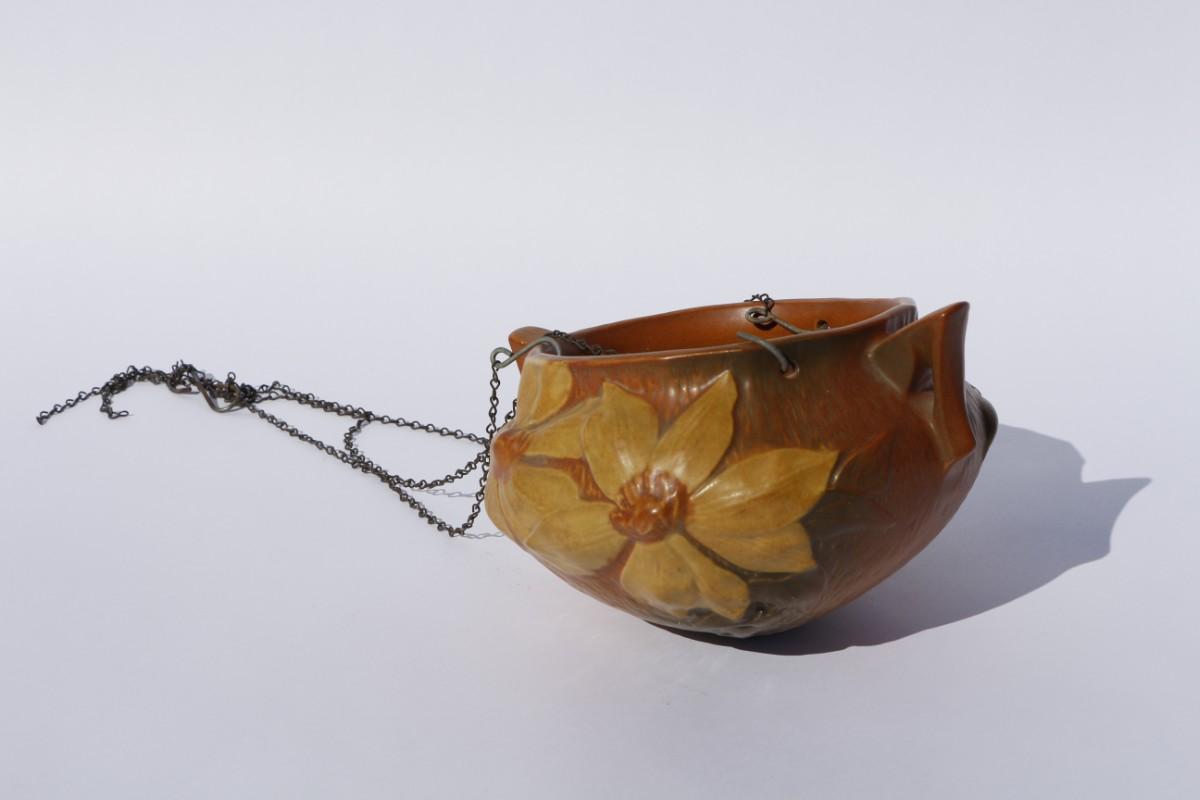Rare Roseville Pottery Hanging Pot, Clematis Motif