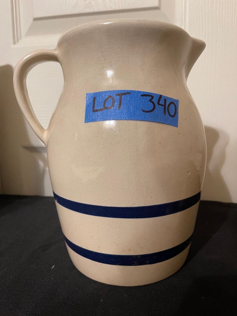 Beautiful A.R.P. Co. Roseville Pottery Pitcher made in USA serial #303-1, pair of vintage capodimonte hand painted salt & pepper shakers. Pitcher-(8-1/2" tall x 7" wide)