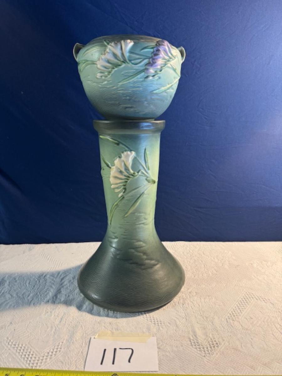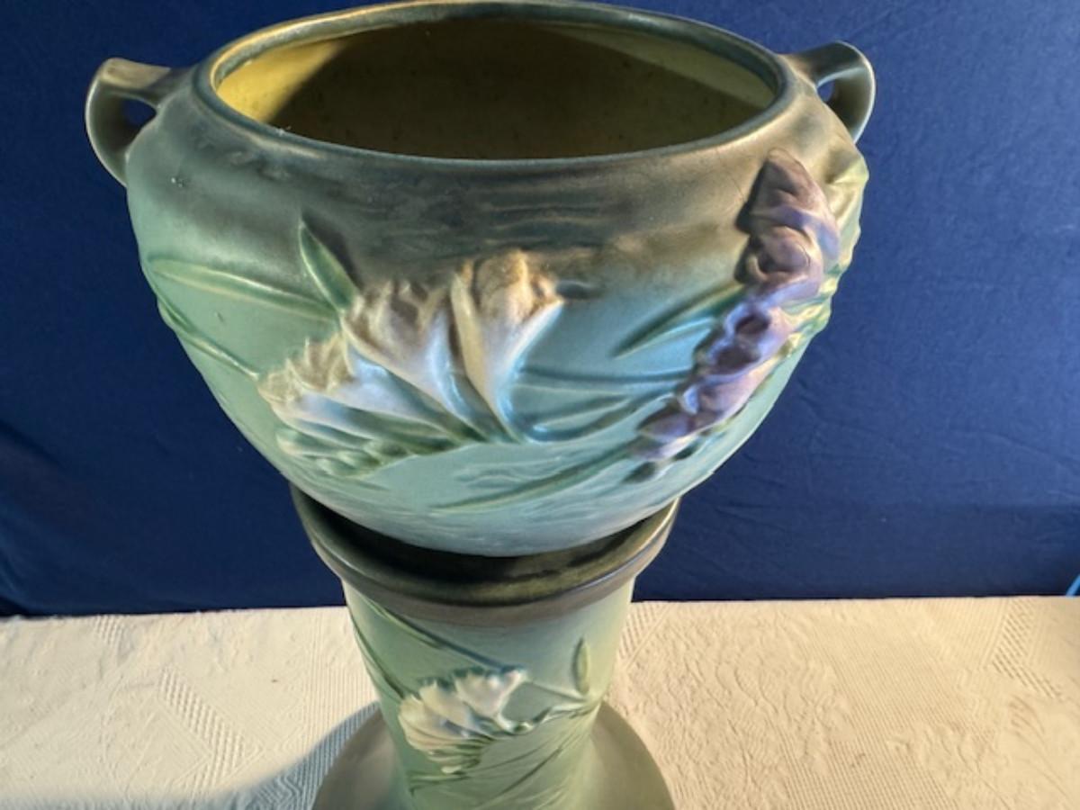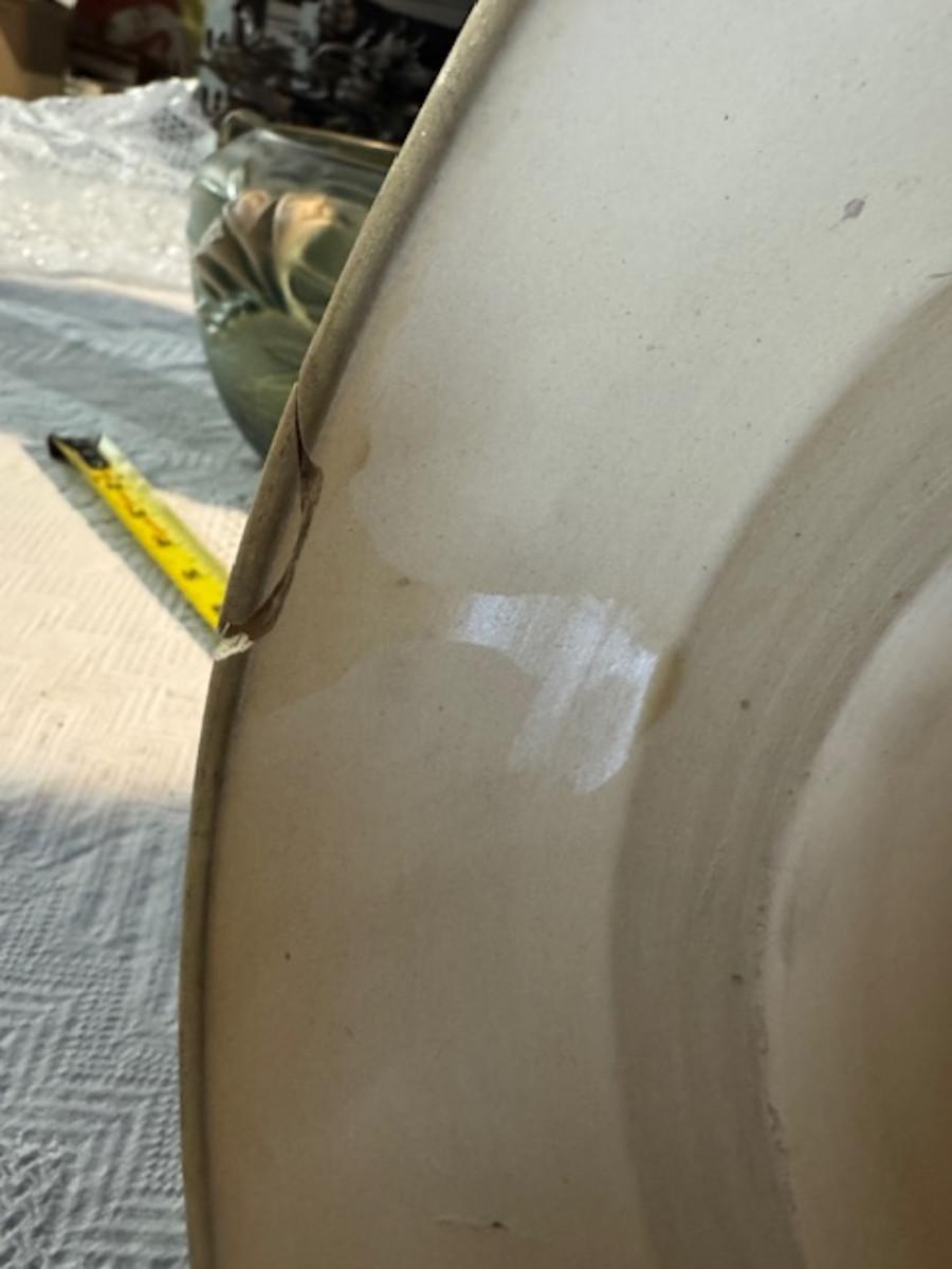 Stand USA bottom base 10.5" x top base 6.5" x 17" (has 2 small chips that cannot be seen from the outside, only on the inside. Bowl 9" diameter x 6.5". Note that the top probably doesn't go with the bottom.