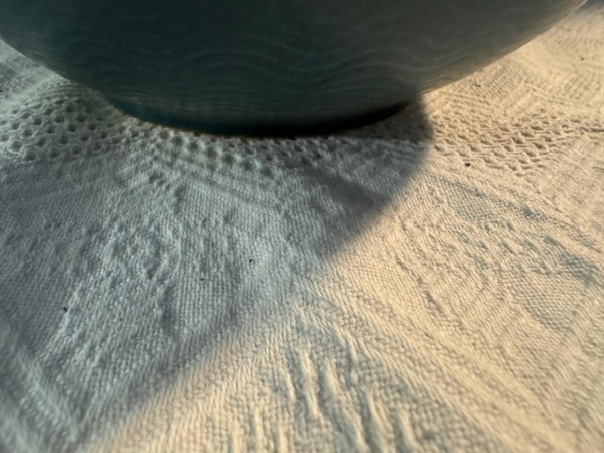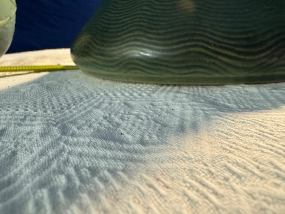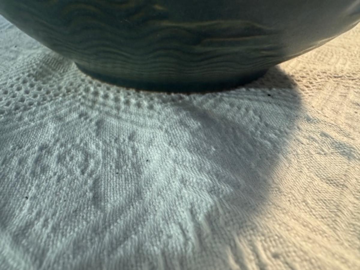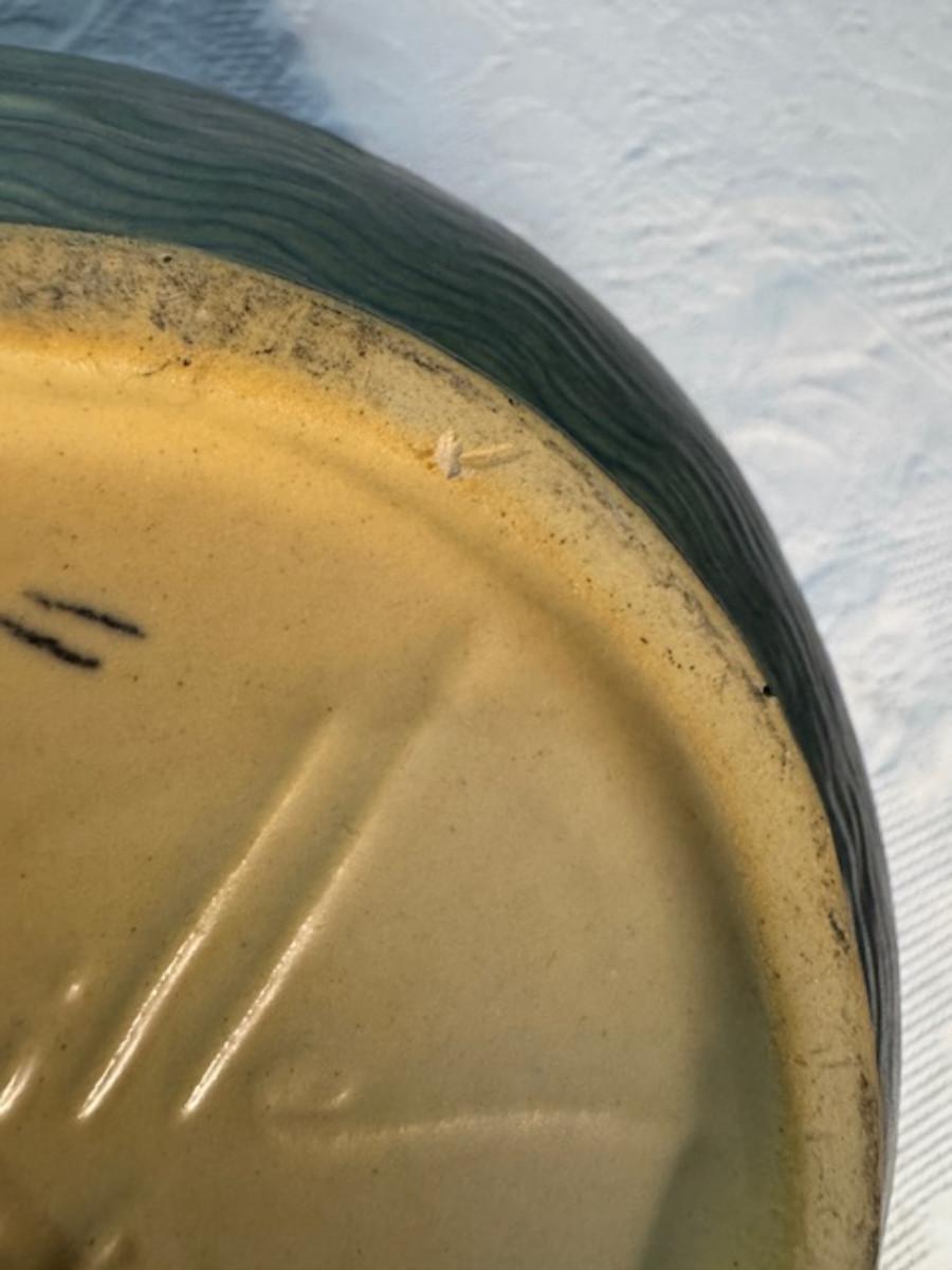Stand USA bottom base 10.5" x top base 6.5" x 17" (has 2 small chips that cannot be seen from the outside, only on the inside. Bowl 9" diameter x 6.5". Note that the top probably doesn't go with the bottom.