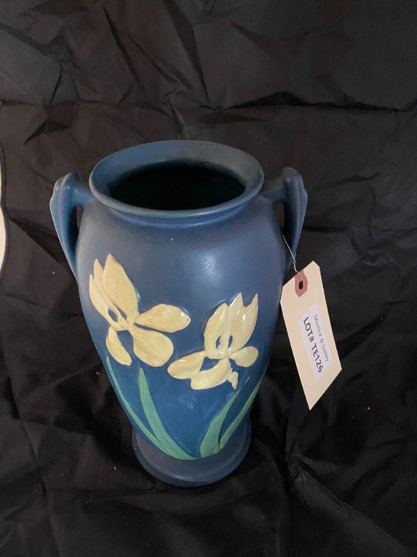 Roseville vase with flowers