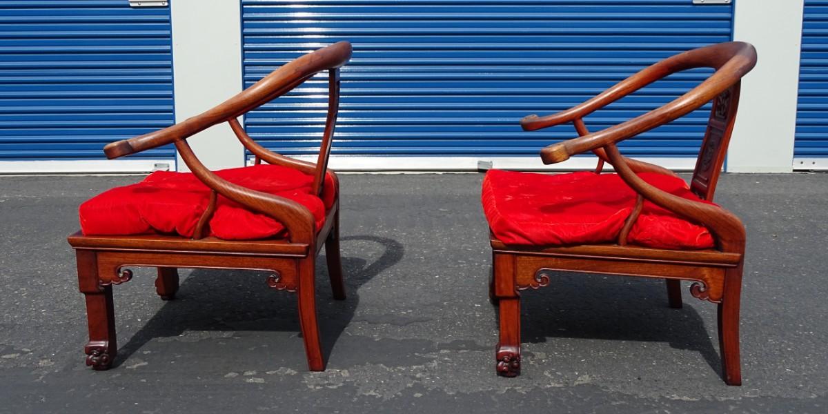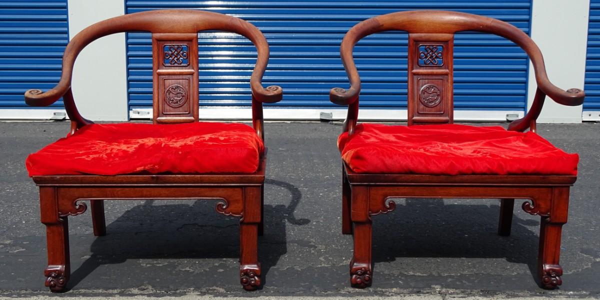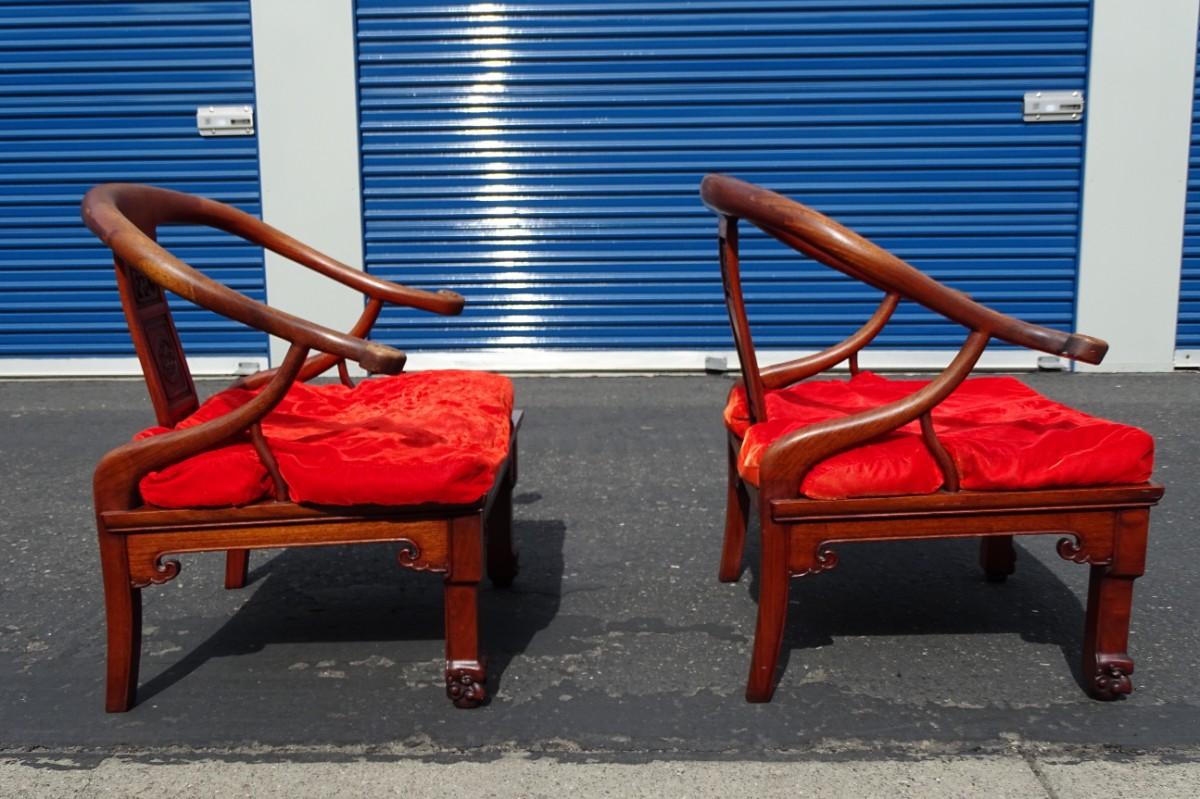 Rosewood Asian Chairs set of two by Cathay Arts Company in Hong Kong. Some wear and tear