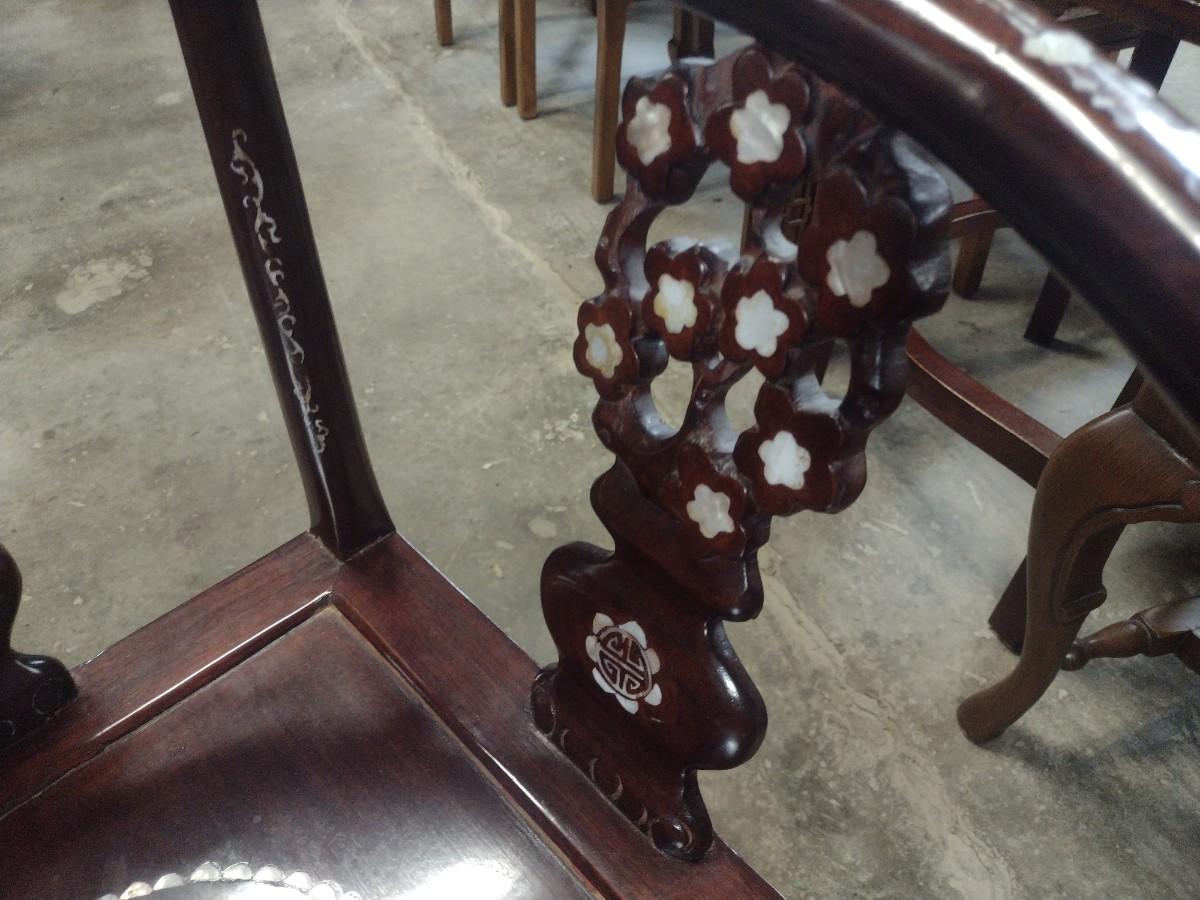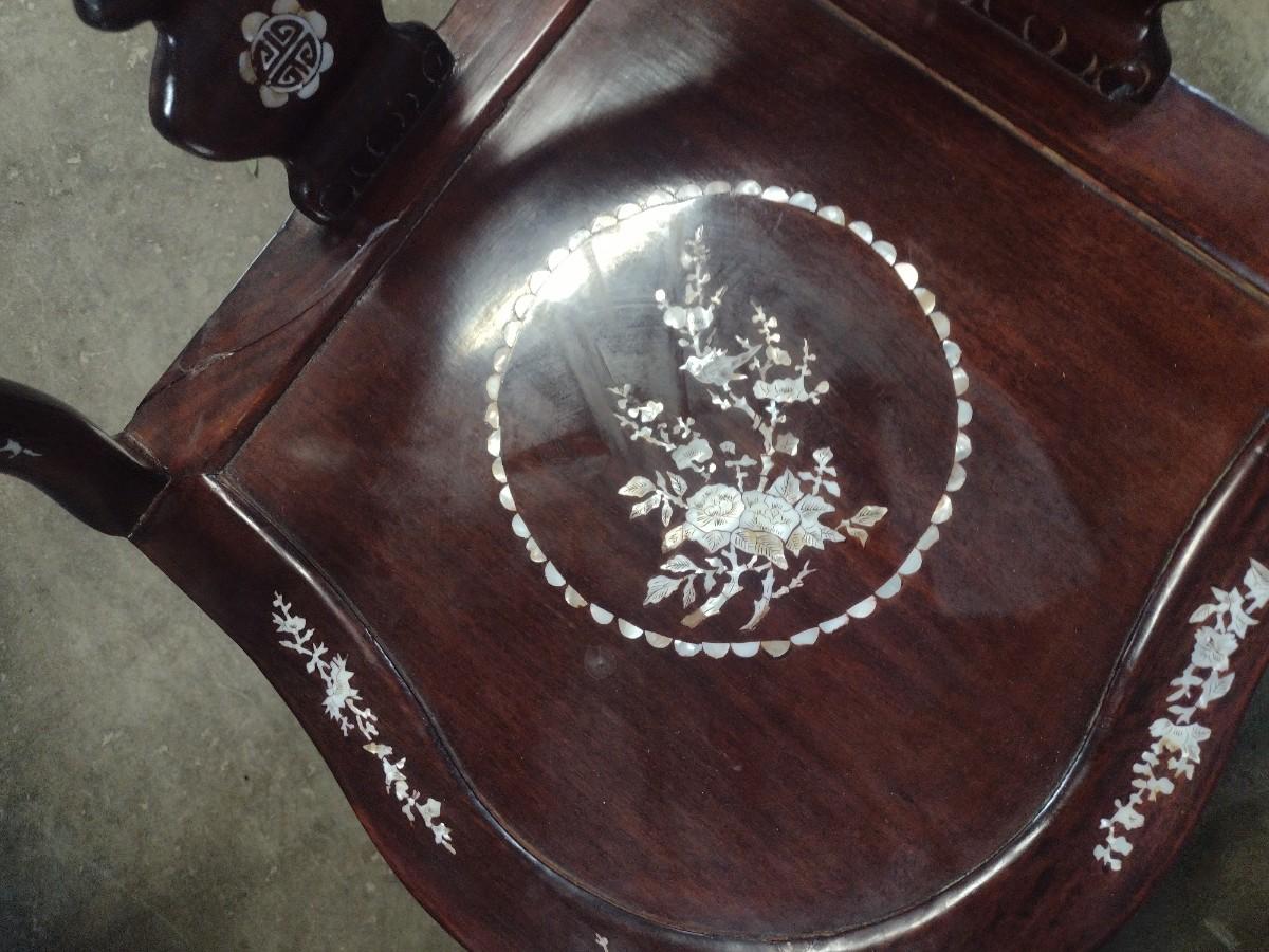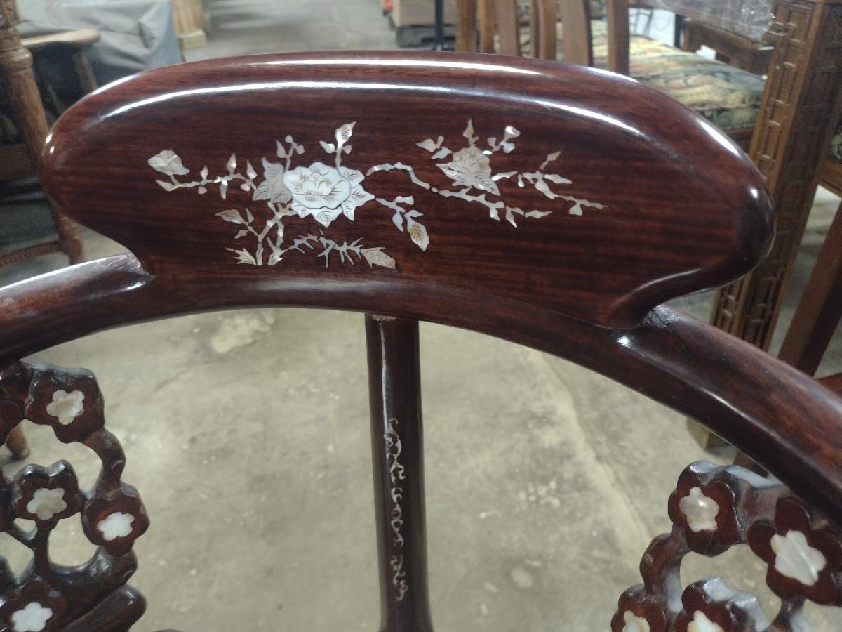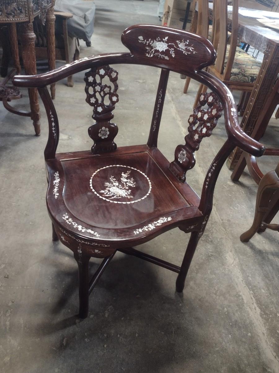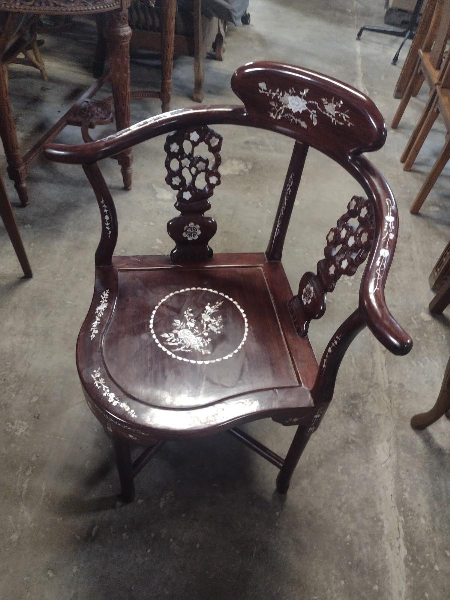 Rosewood Corner Chair with Mother of Pearl Inlay