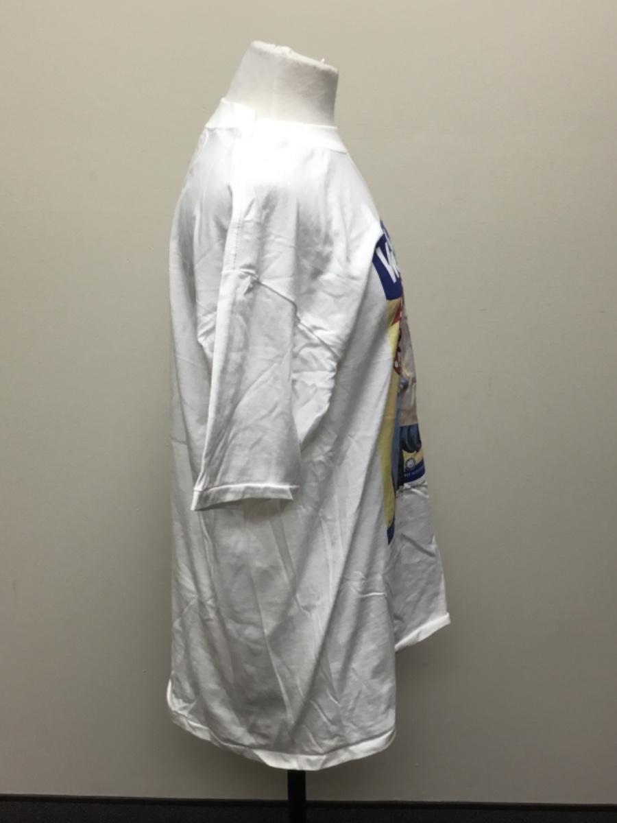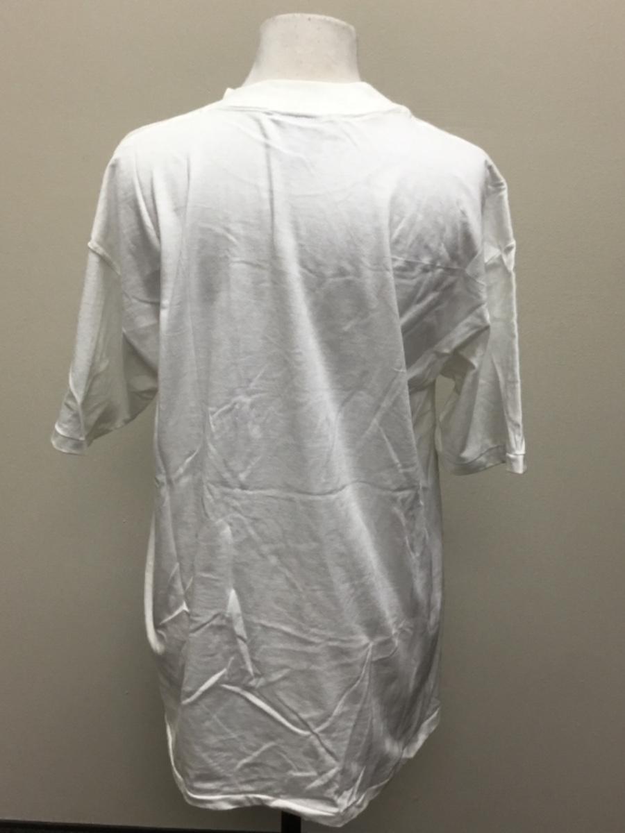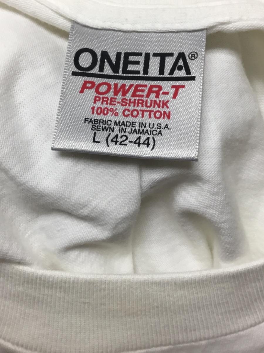 Wrinkled due to being folded. Shirt is in good condition. Graphic shirt comes in a large. Fabric is made in the USA and sewn in Jamaica.