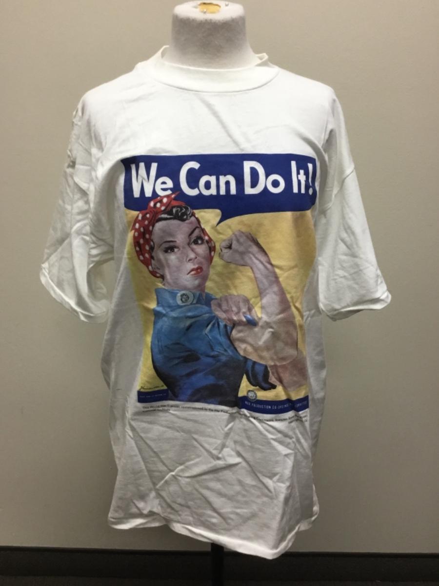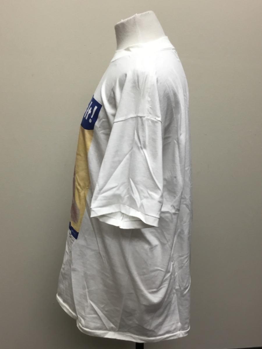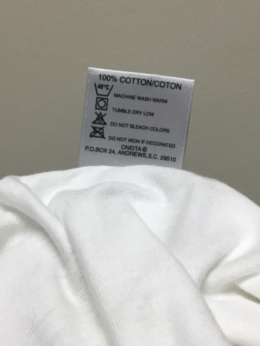 Wrinkled due to being folded. Shirt is in good condition. Graphic shirt comes in a large. Fabric is made in the USA and sewn in Jamaica.