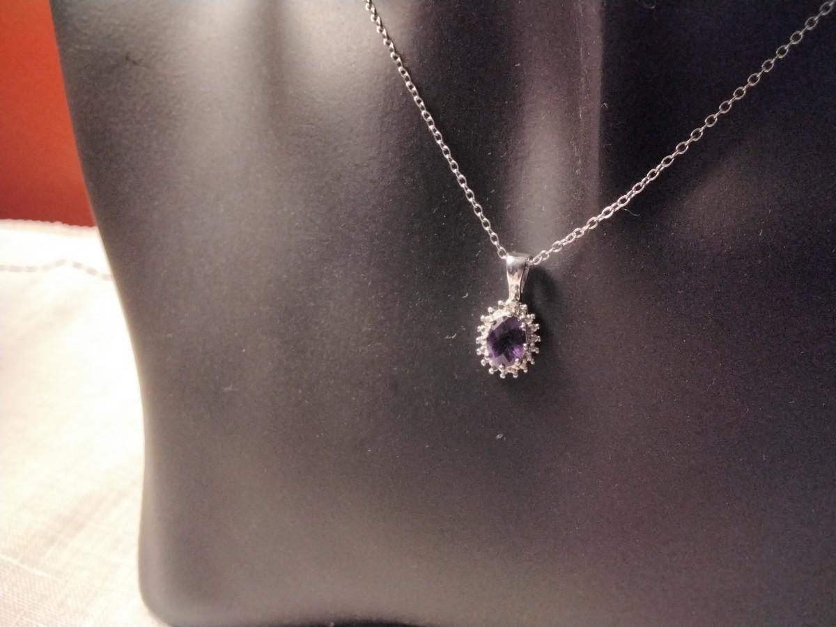 This necklace really is a standout with a gorgeous amethyst surrounded in diamonda