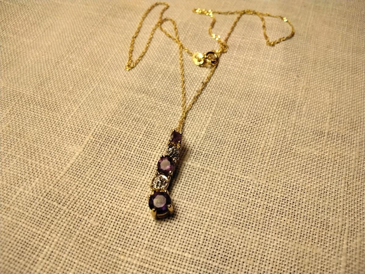 ROSS SIMONS Amethyst & Diamond Pendant On 16" 10K Gold Chain
