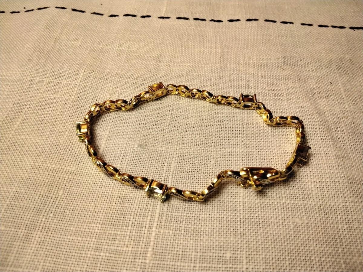 ROSS SIMONS Oval Cut multi gemstone diamond tennis bracelet. Blue Topaz, Peridot, Citrine and amethyst 18k/925 7.25" Bracelet