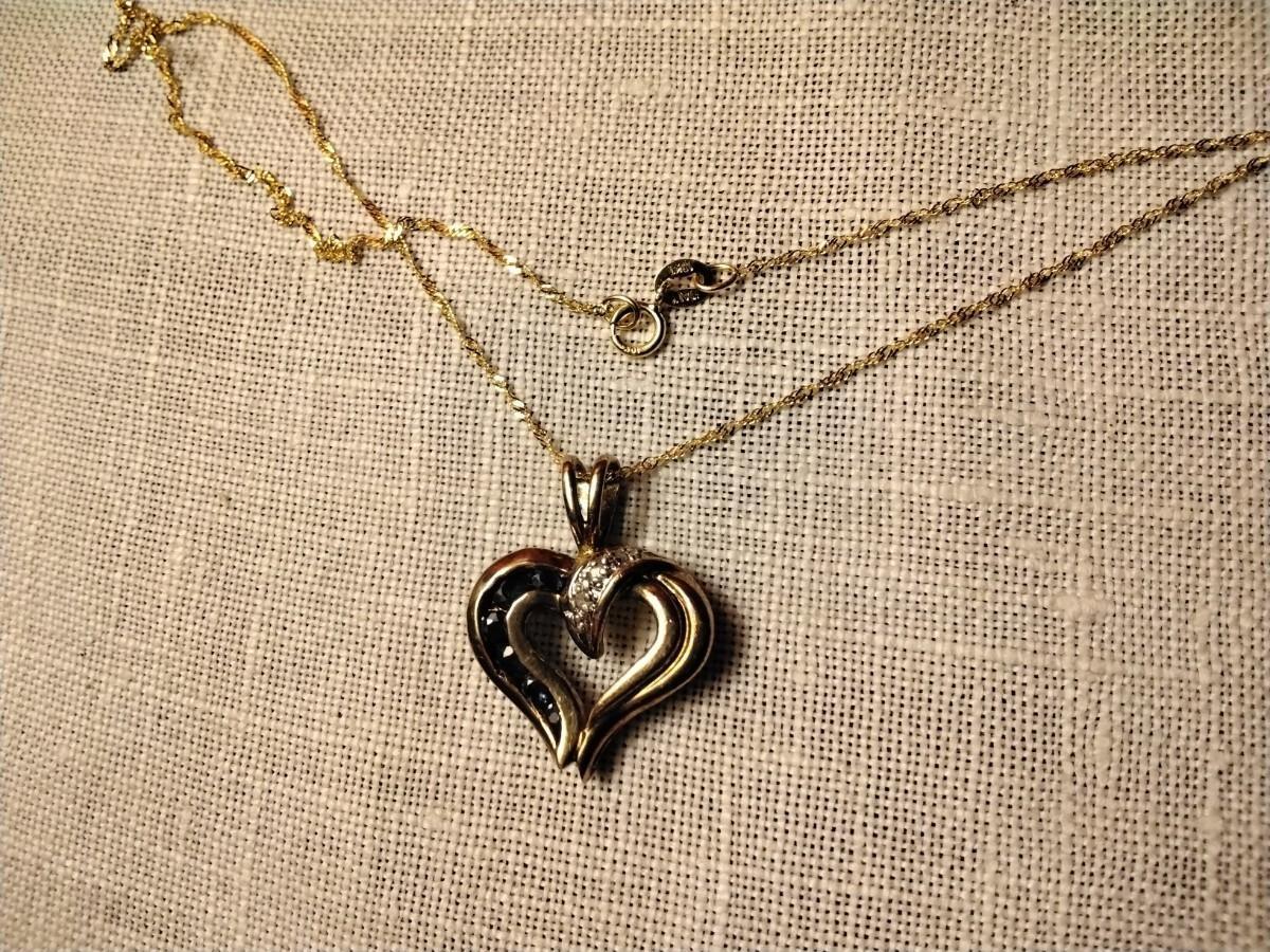 ROSS SIMONS Sapphire and Diamond Heart 16" 10K Necklace