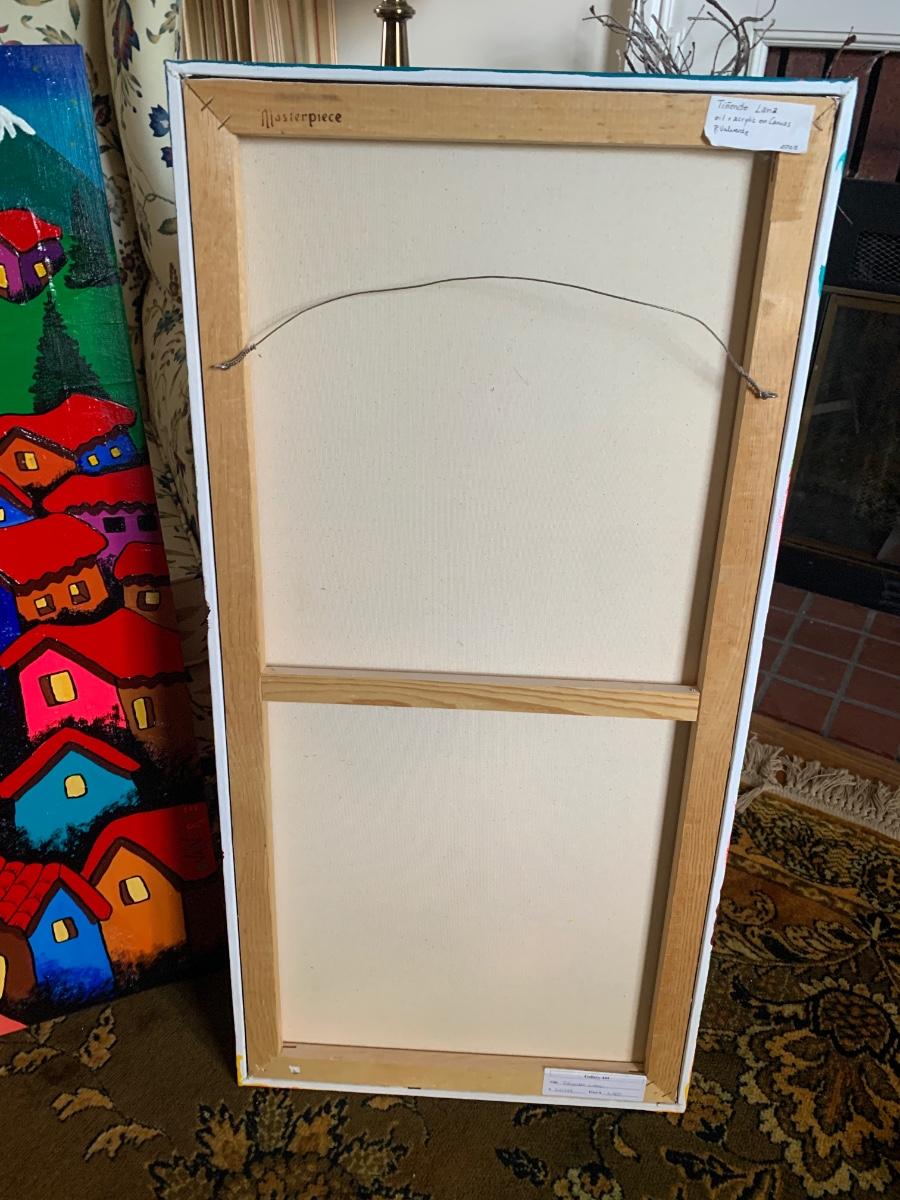 Excellent original condition. Canvas remains tight with vivid pigment and no evidence of fading, abrasions, or repairs. Professionally stretched and wired, ready to hang.