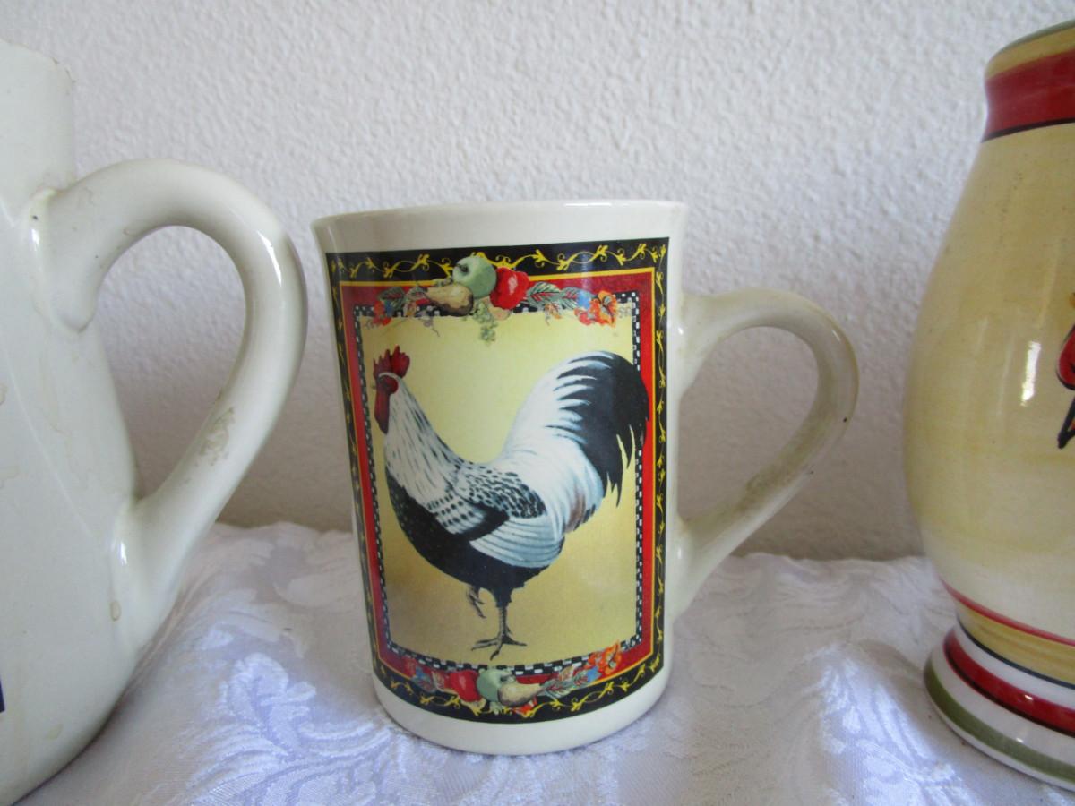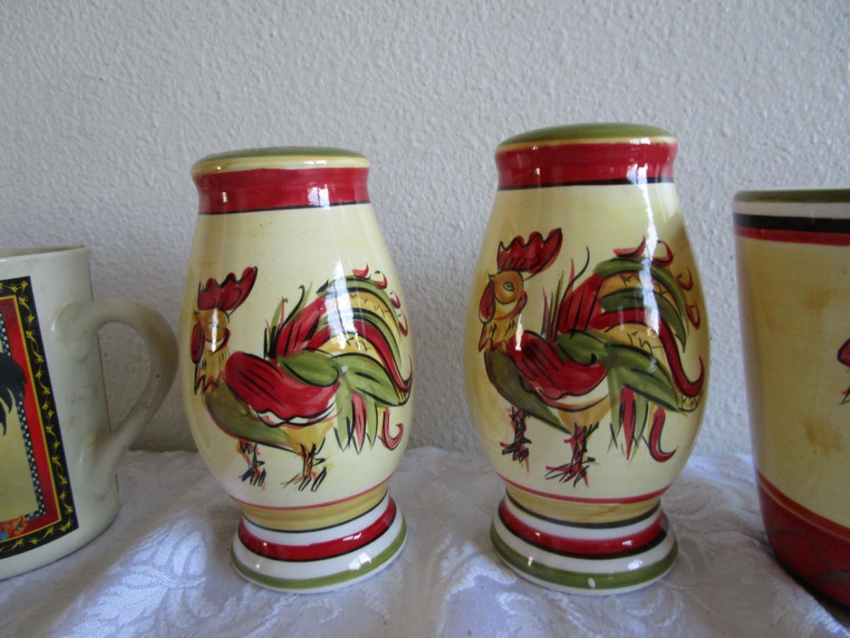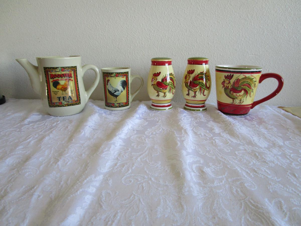 Salt & Pepper shakers, 2 coffee cups, Pitcher with small chip