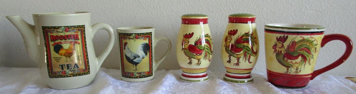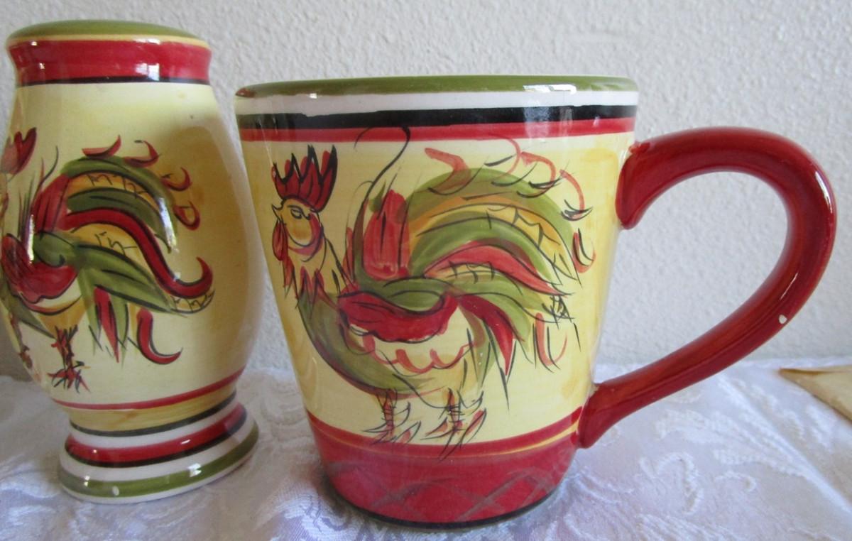 Salt & Pepper shakers, 2 coffee cups, Pitcher with small chip