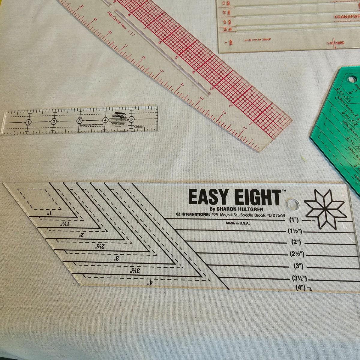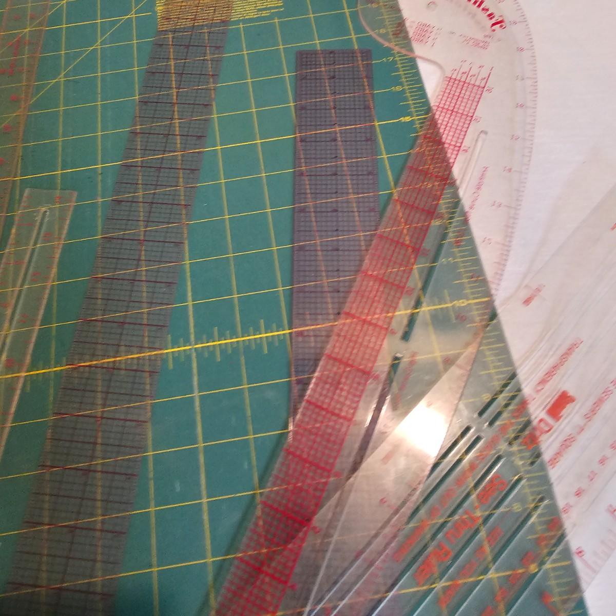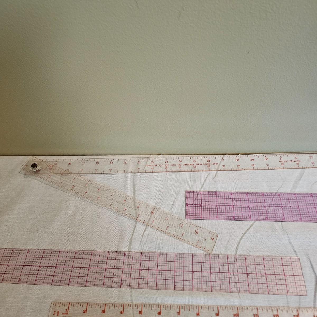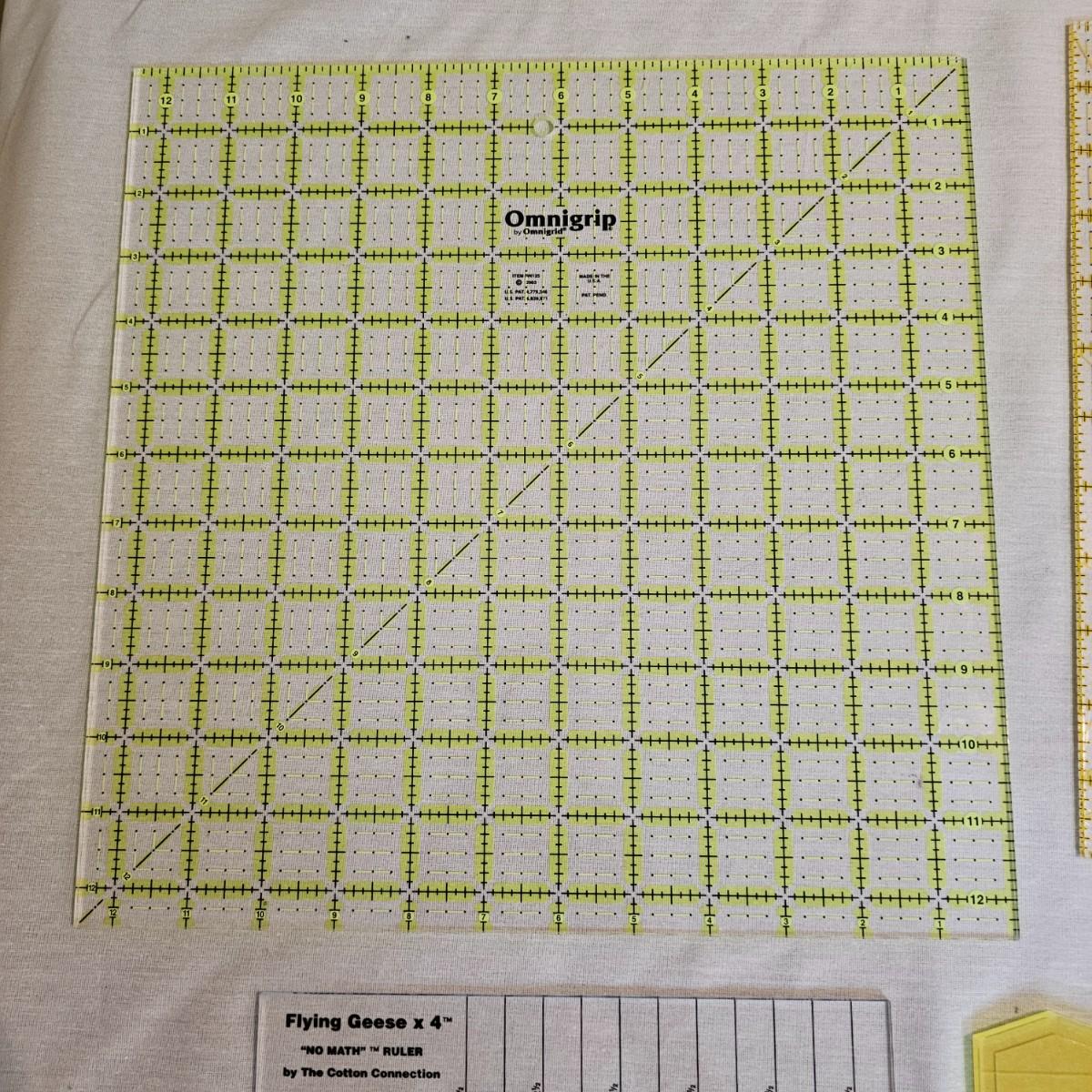 One Olfa 24"x 30" cutting mat plus several types of measuring grids and rulers, from 4" x 8" to 12"sq. Also includes two rotary cutters, 19mm and 45mm with extra blades. Good for quilting or sewing. See photos for details. Local pickup only.