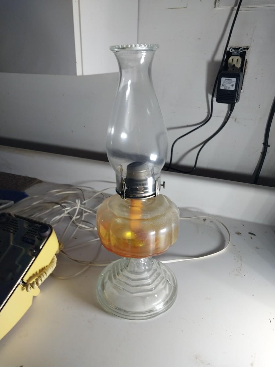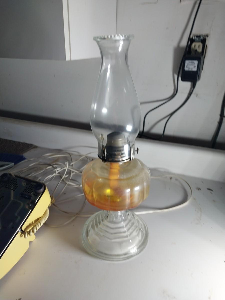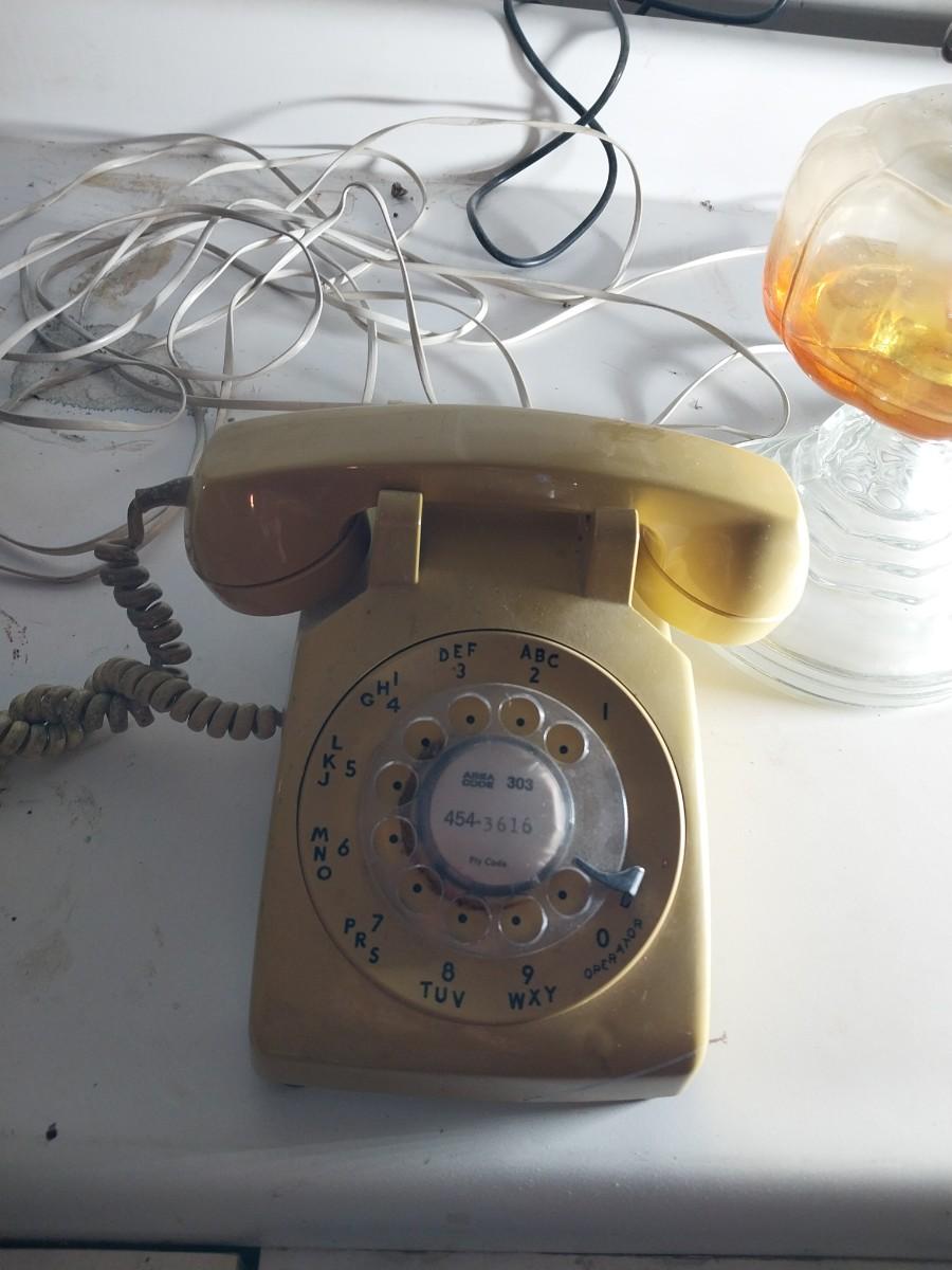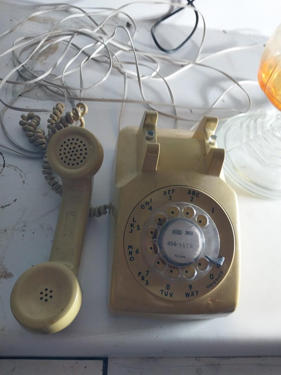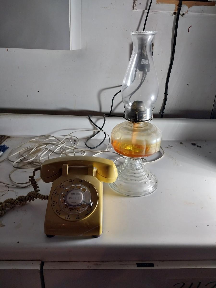 ROTARY TELEPHONE AND A GLASS OIL LAMP