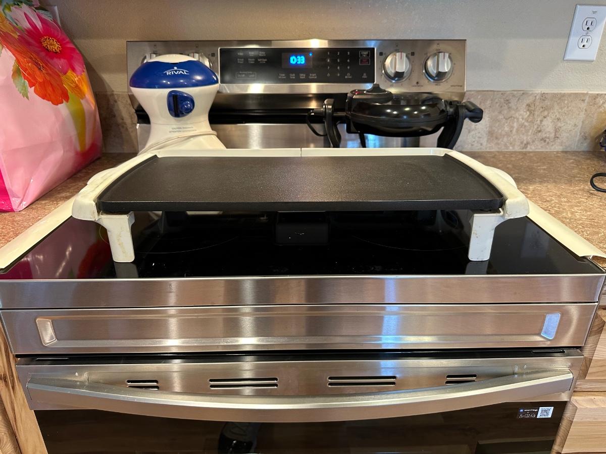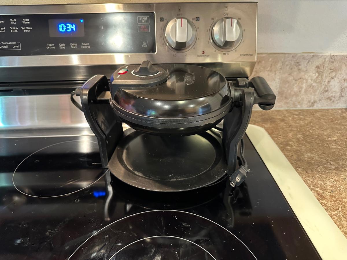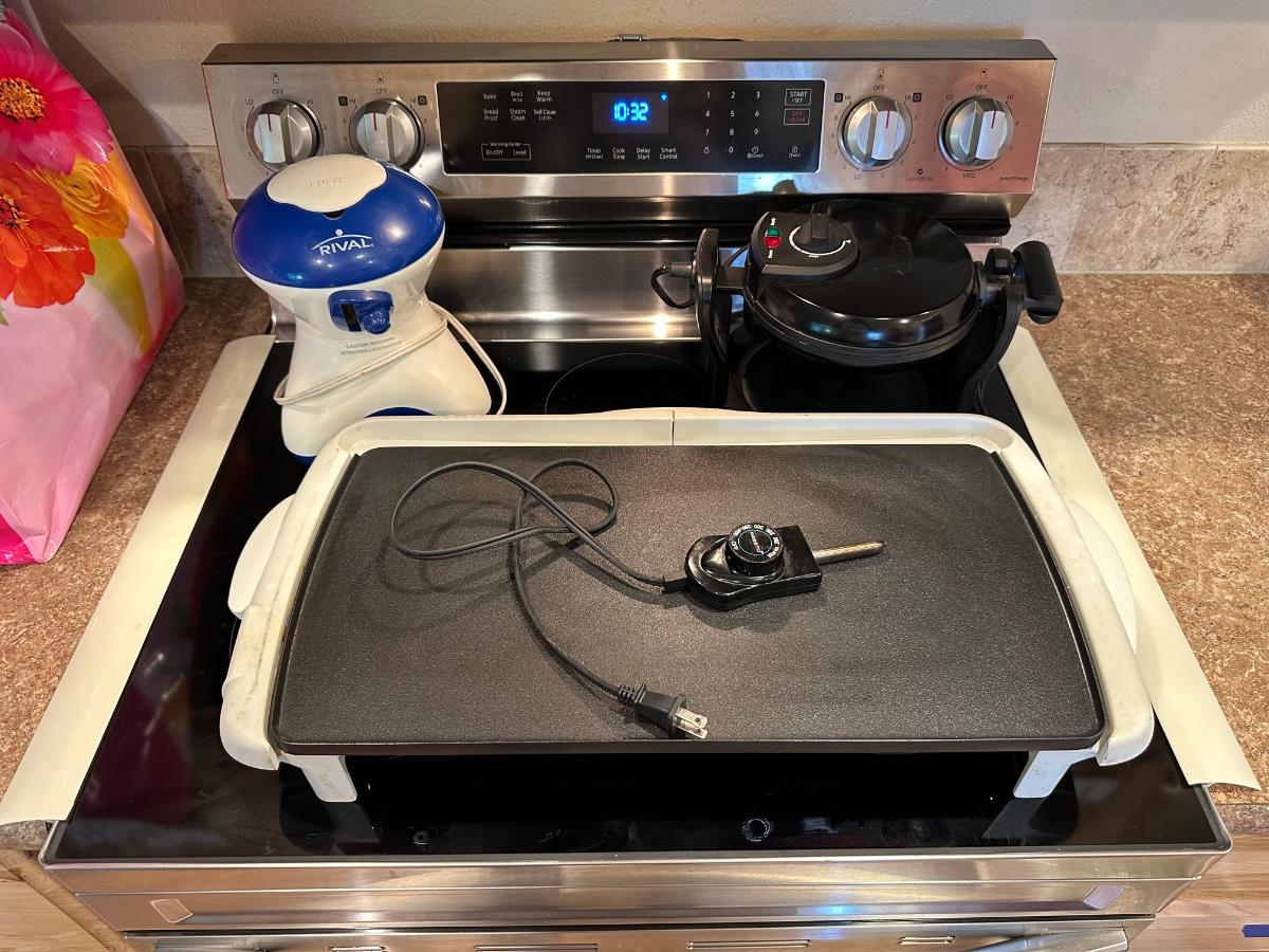 ROTARY WAFFLE MAKER, RIVAL TEFLON GRIDDLE AND A RICE STEAMER