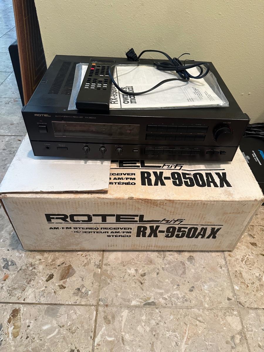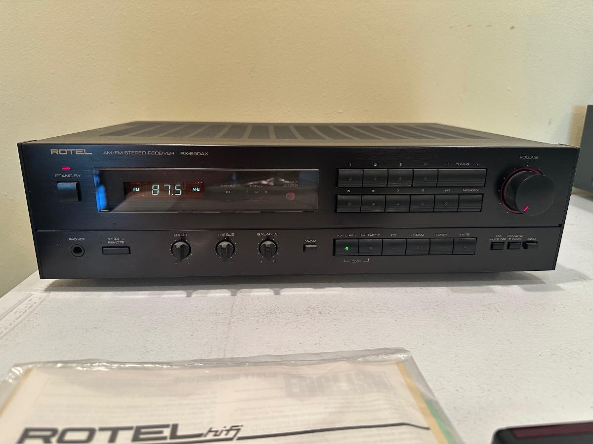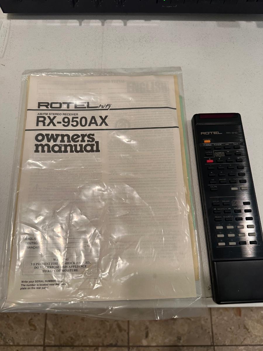 Rotel RX-950AX AM/FM stereo receiver from the 1990s. This unit comes with its original owner’s manual and remote, as pictured.