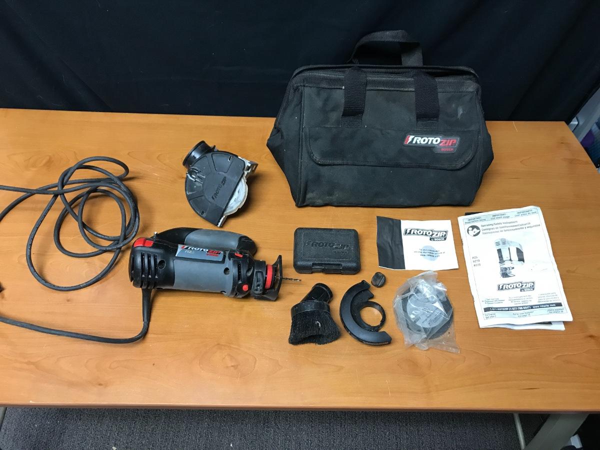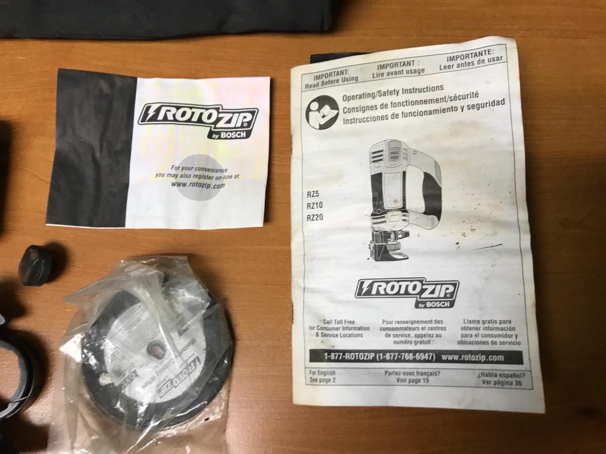 Bosch Rotozip Corded Saw with Carrying Bag, there is no significant damage to the tool and is in good condition. Comes with instructions and other accessories, check pictures for more details and for what comes in the lot. Has not been tested.