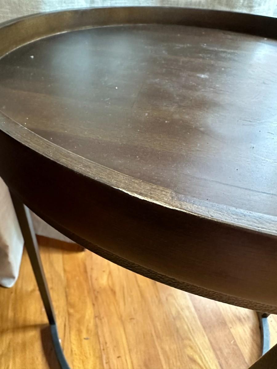 Dark Brown Table with Metal Base measures 22.25"H x 19.5"w