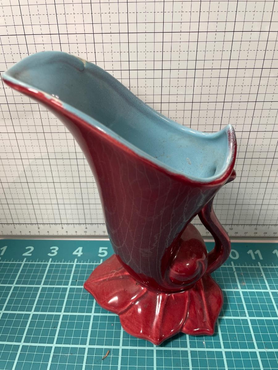 Red Wing planter and blue basket