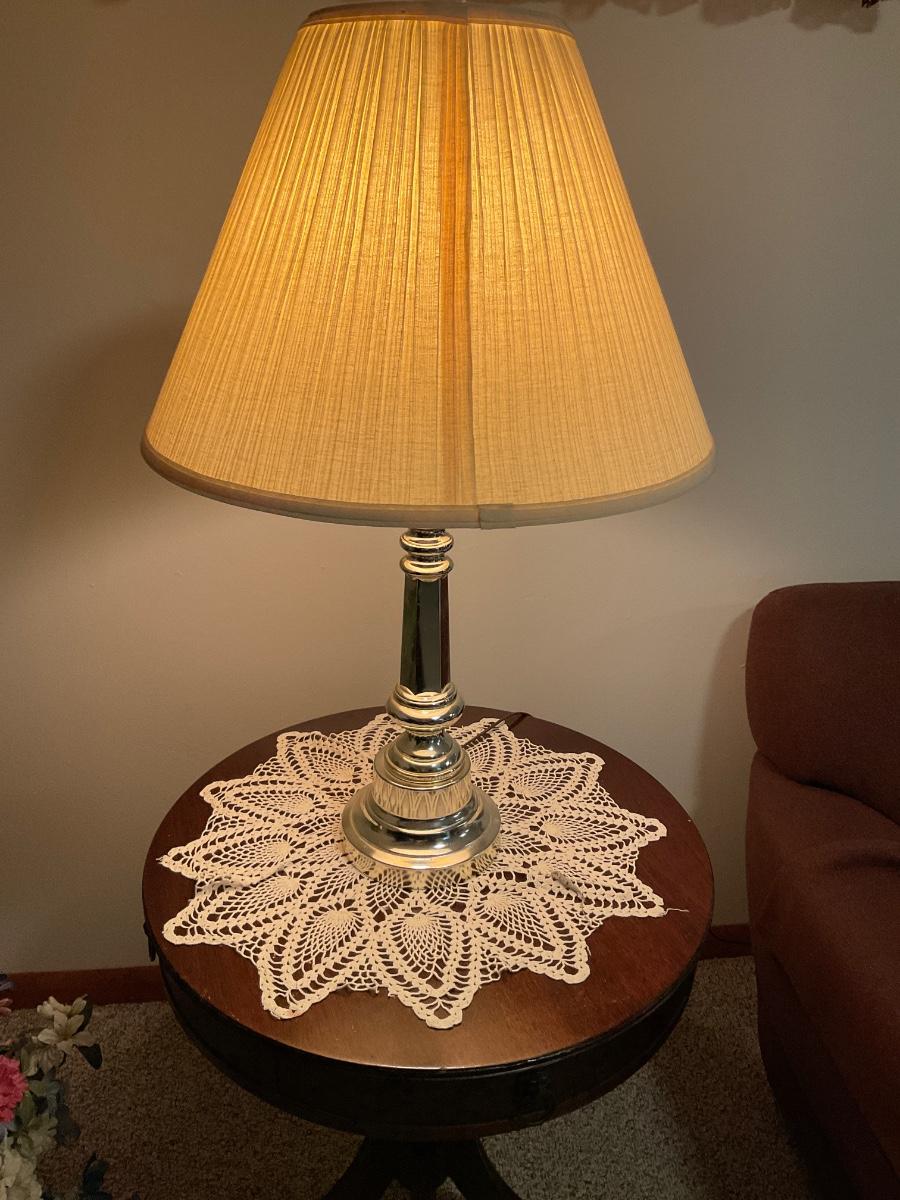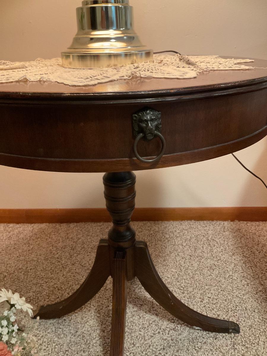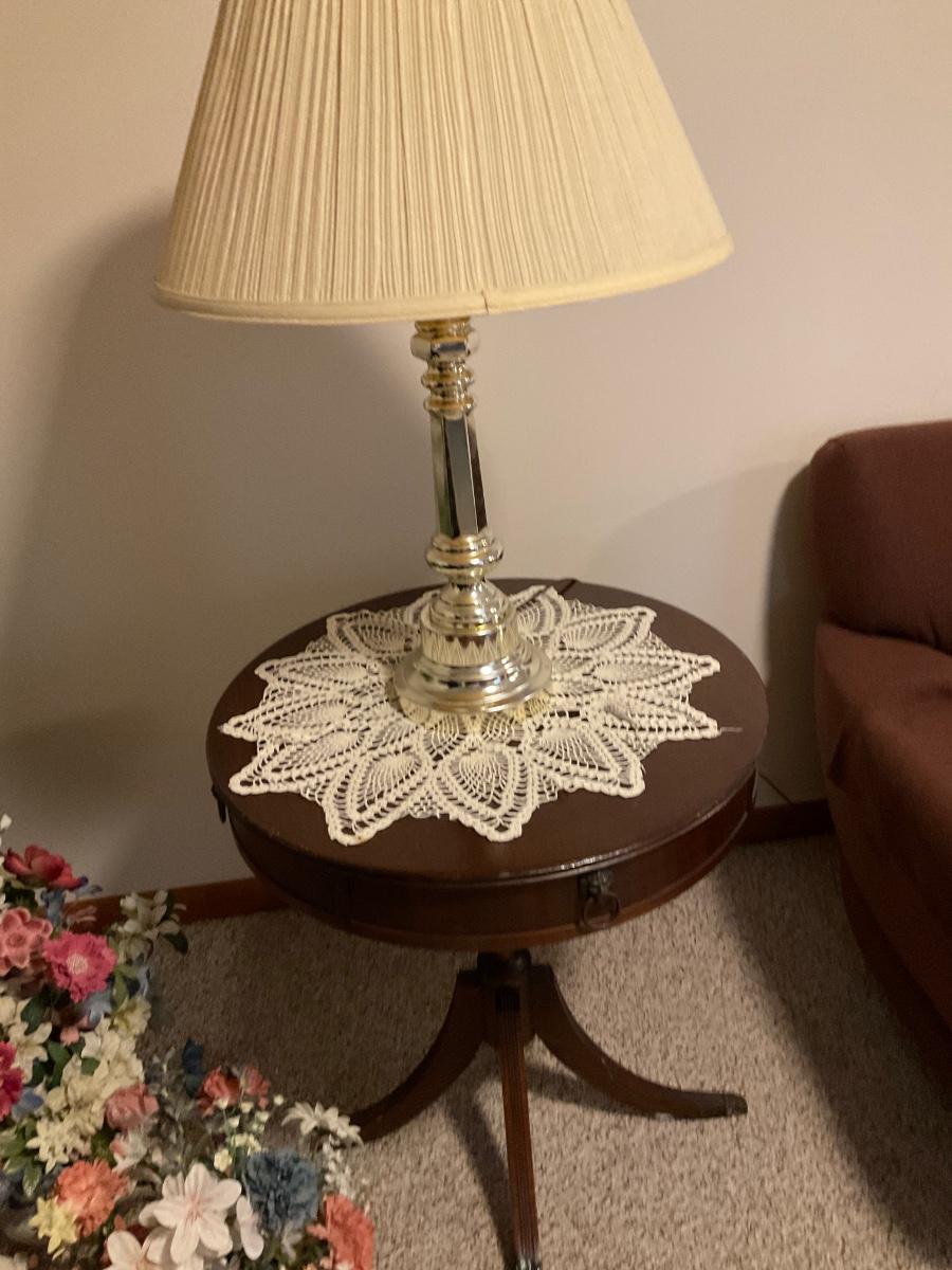 Round clawfoot table and touch lamp