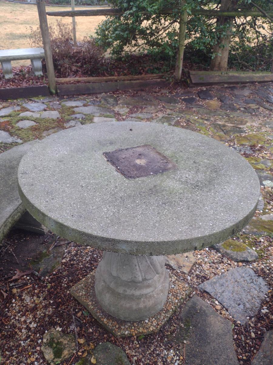 Round Concrete Garden Table. Approx 36" in diameter, 30" tall.