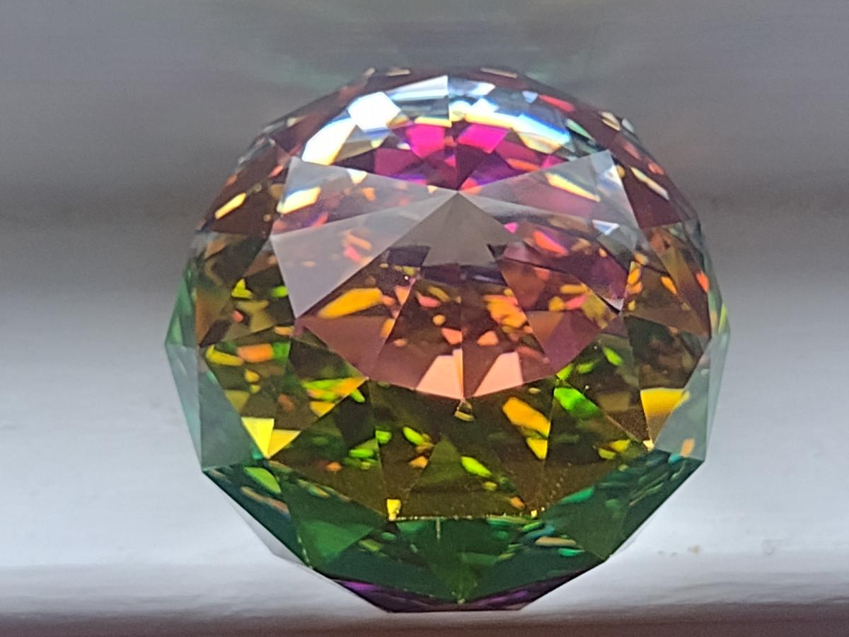 Round Crystal Disco Ball Vitrail Paperweight- Approx 1 3/4" in Diameter