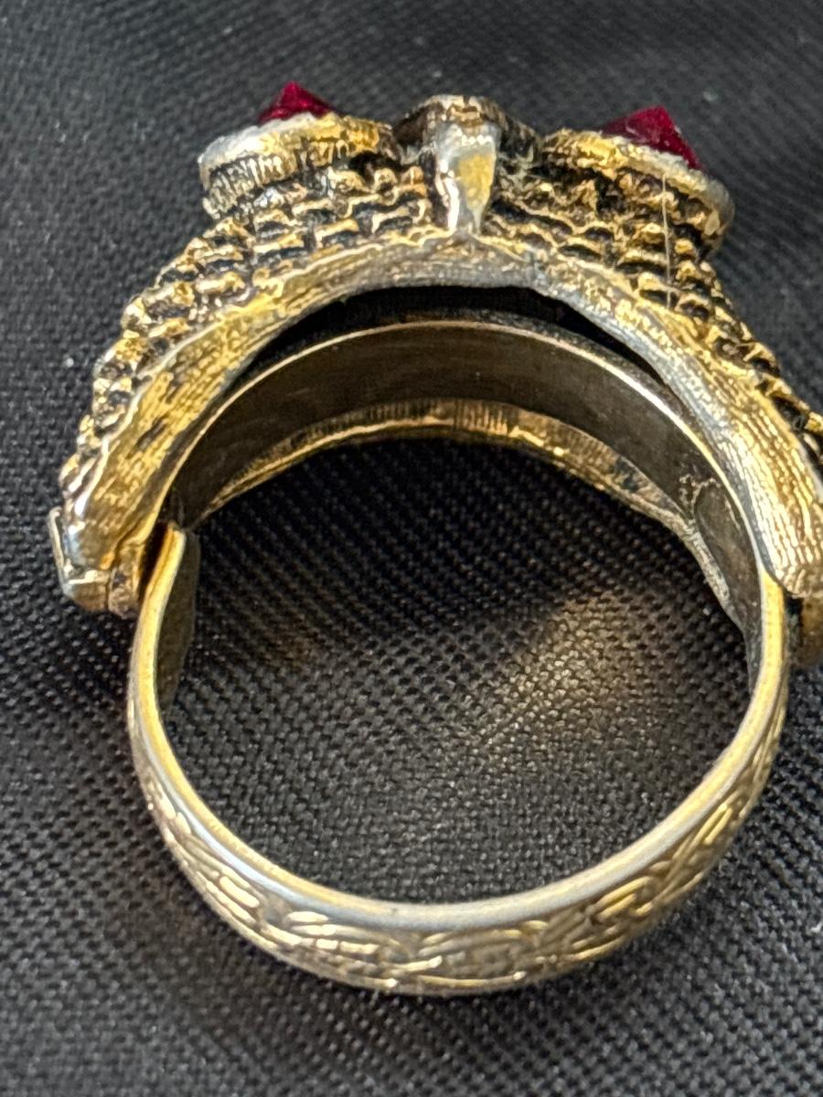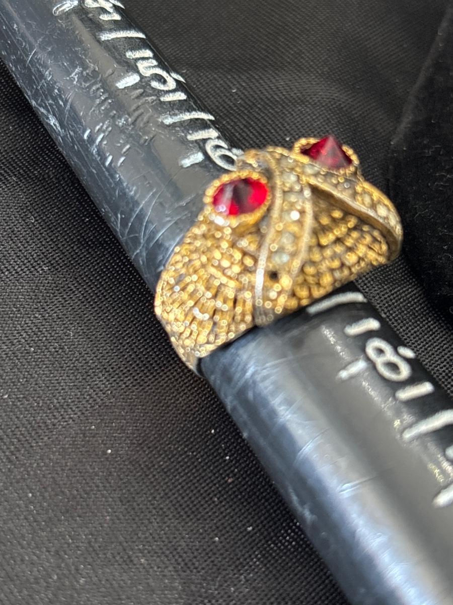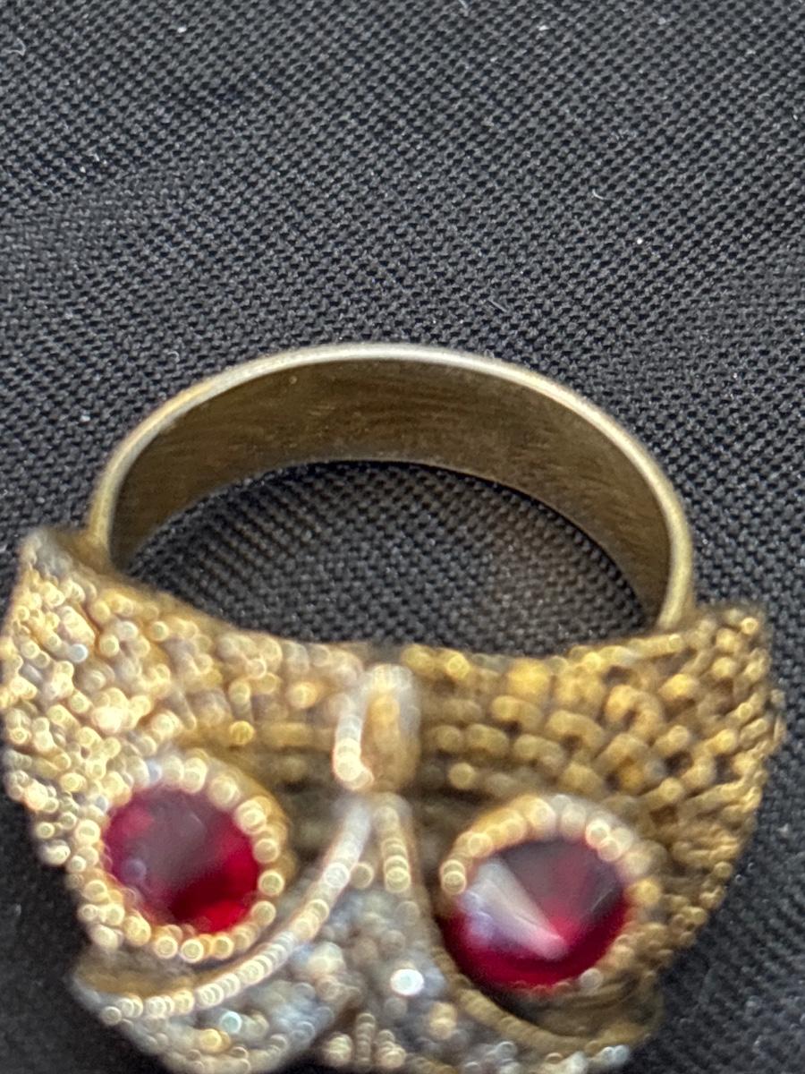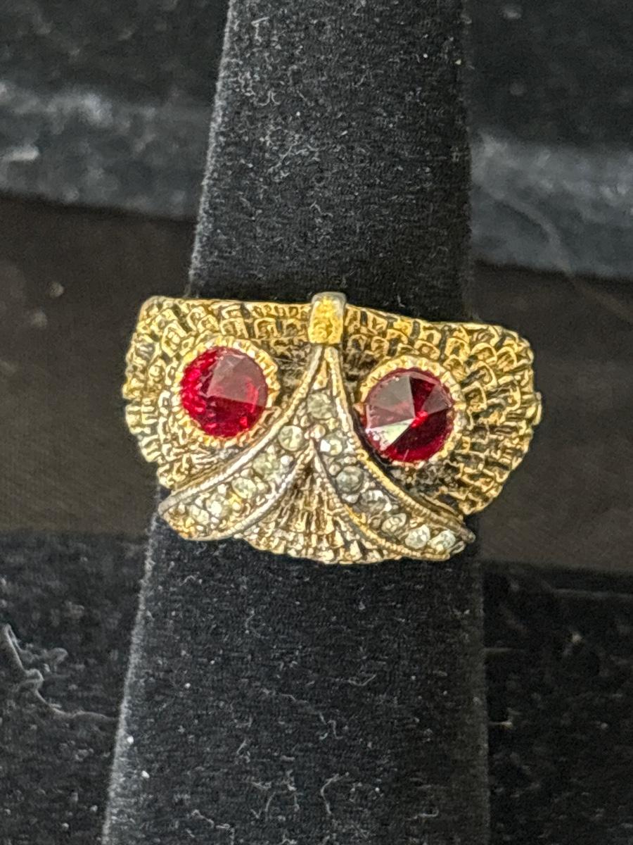 Round Cut Created Ruby Diamond Owl Engagement Ring Gold toned