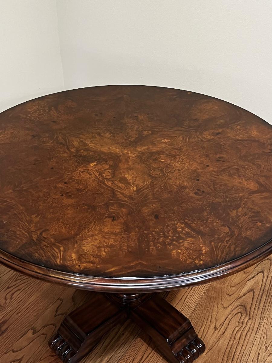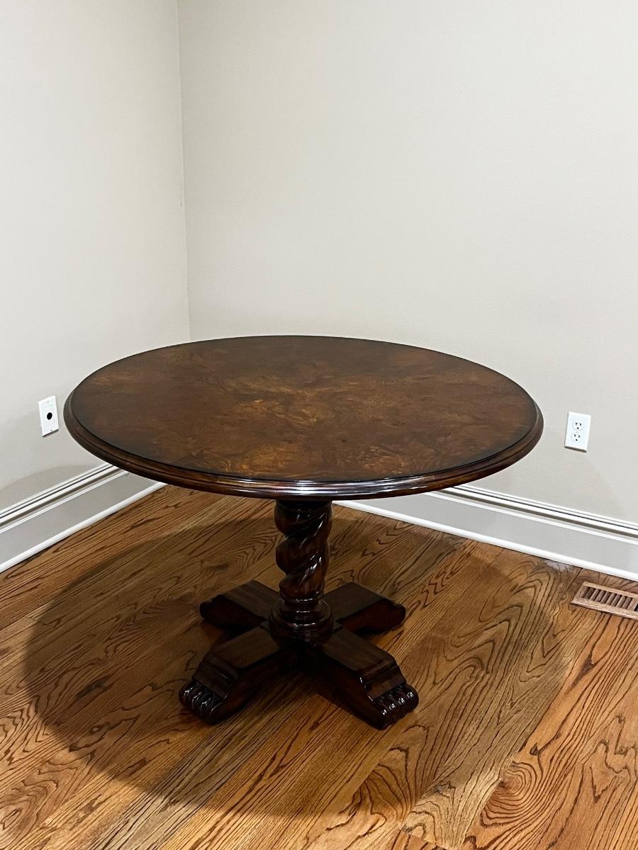 MAITLAND-SMITH ~ Solid Wood Burl Top Round Dining Room Pedestal Table