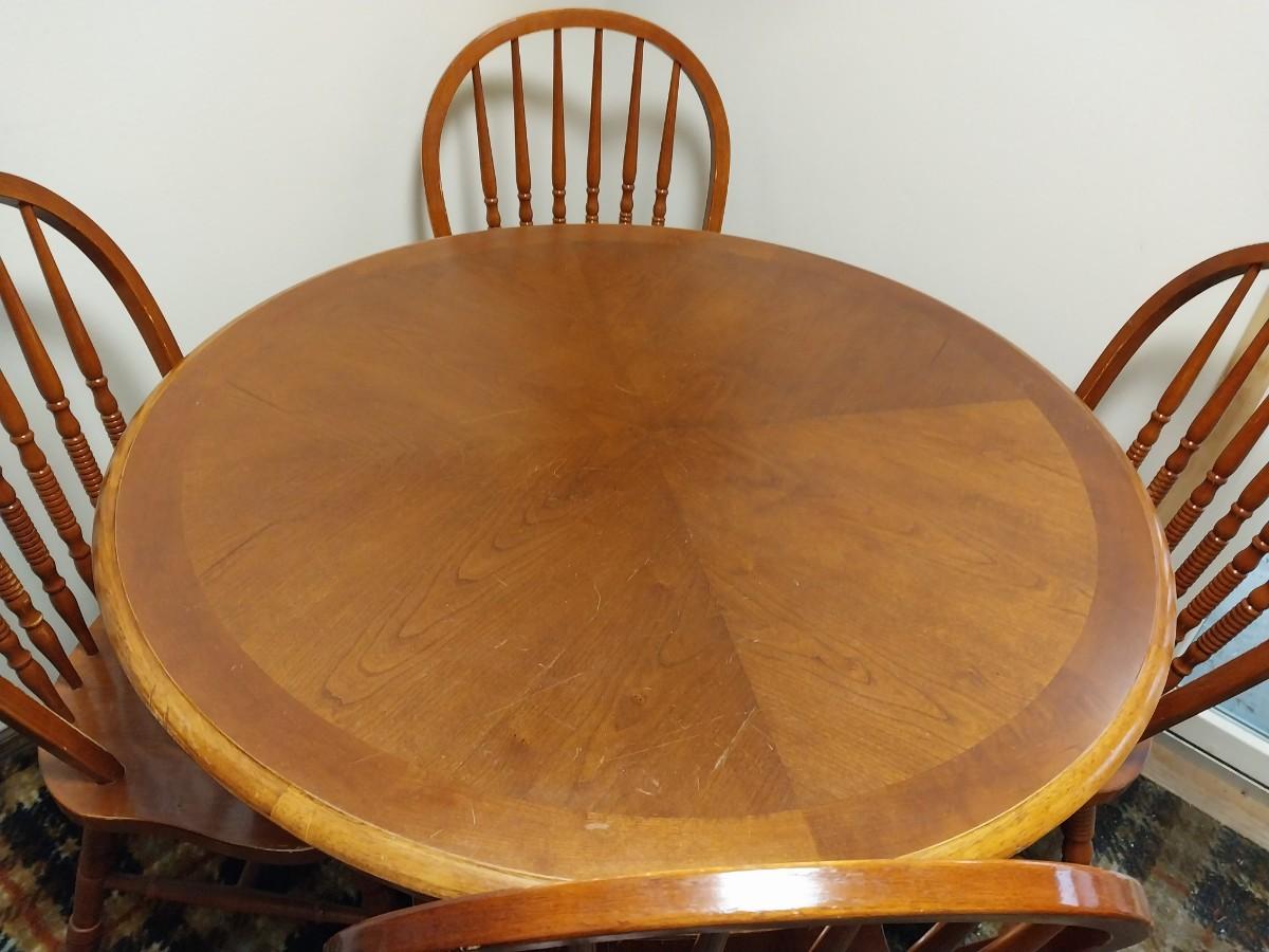 THIS WOULD BE A GOOD STARTER TABLE BUT IT DOES HAVE WEAR AND SCRATCHES