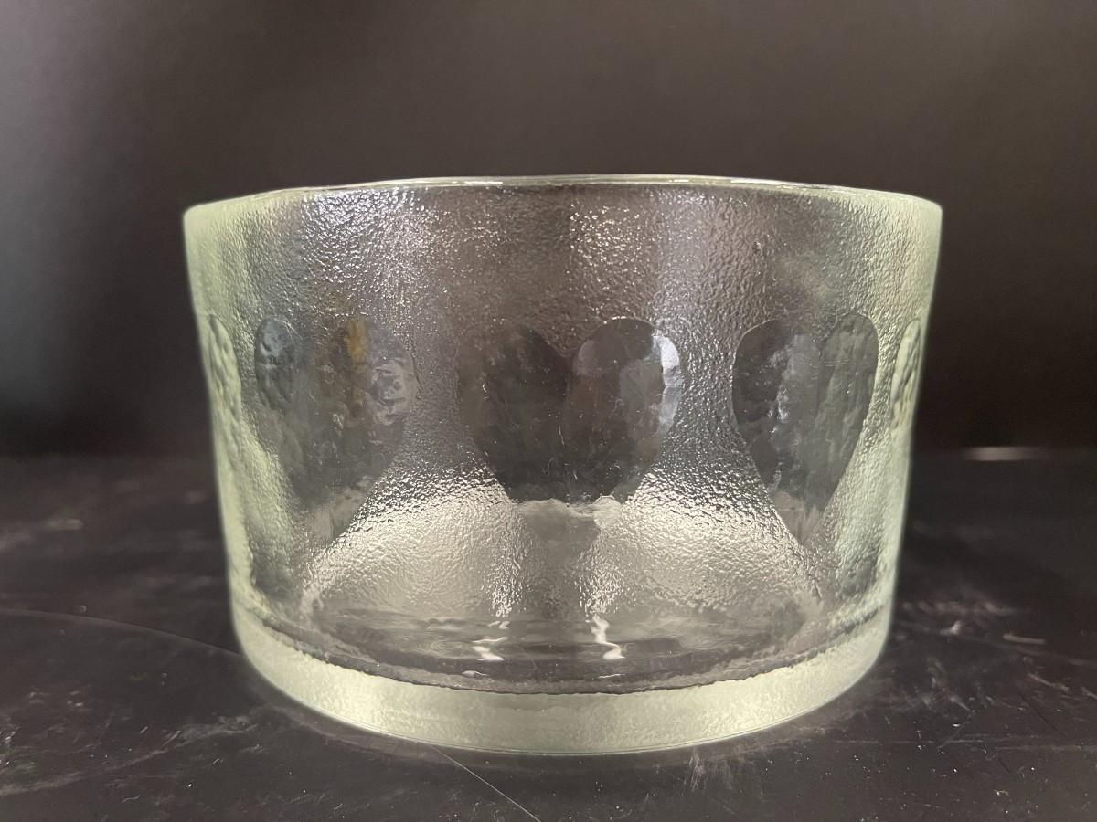 Round Glass Bowl with Clear Hearts
