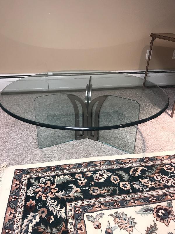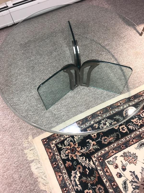 Very Cool 16” Tall x 45” Wide This Glass Coffee Table with Glass/Chrome Base