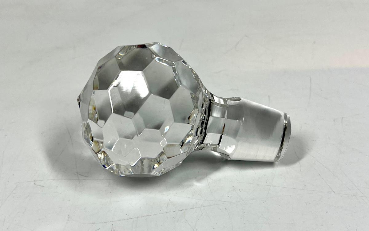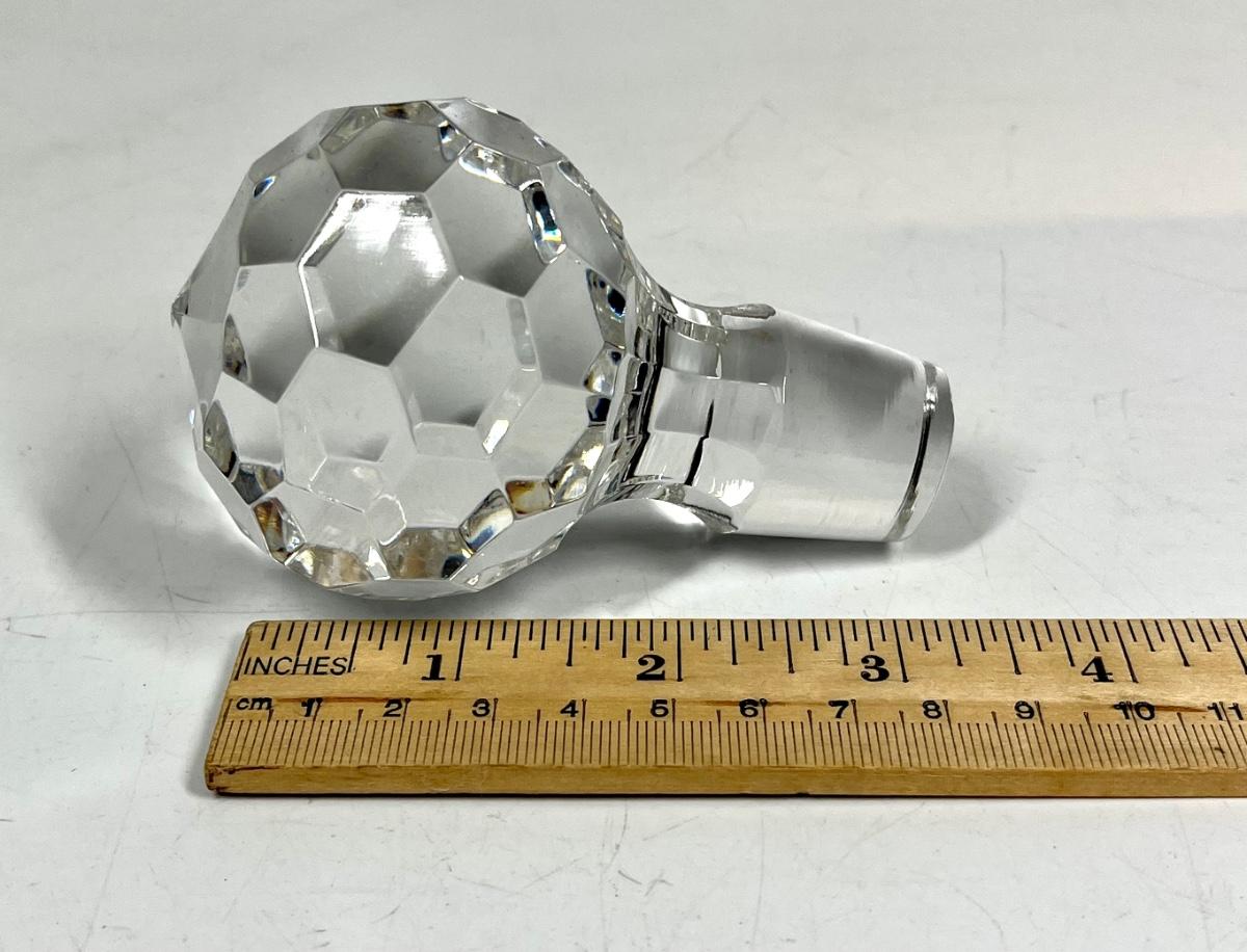 Round Prism Style Crystal Glass Decanter Bottle Stopper Top. In good condition.