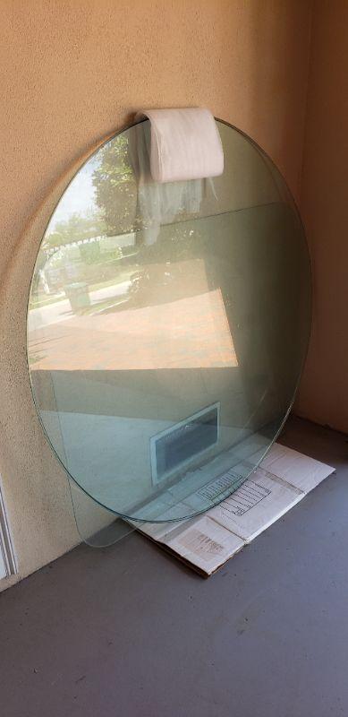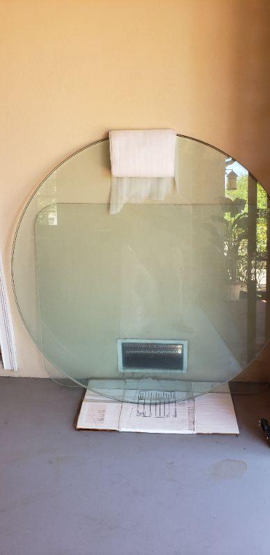 Round Glass Table Top with additional Square Glass, Approximately 59.5 inches in Diameter