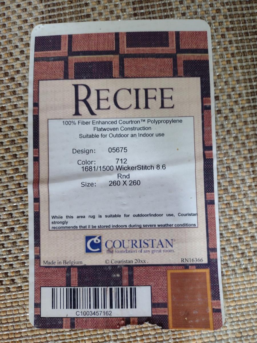 Round Indoor/Outdoor Couristan Polypropylene Rug- Approx 101" in Diameter