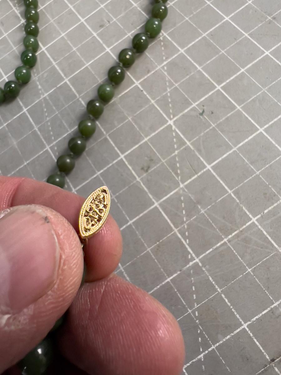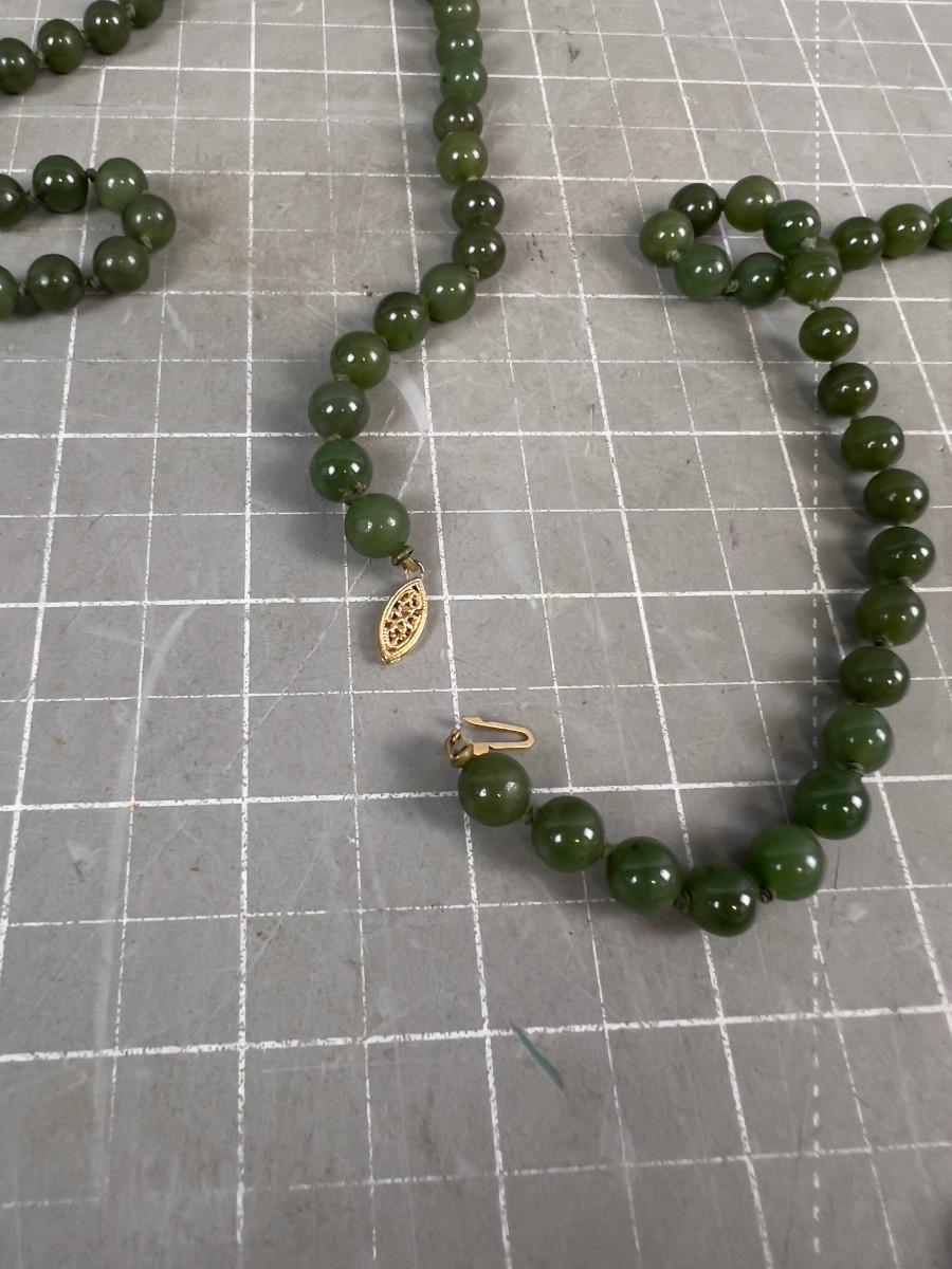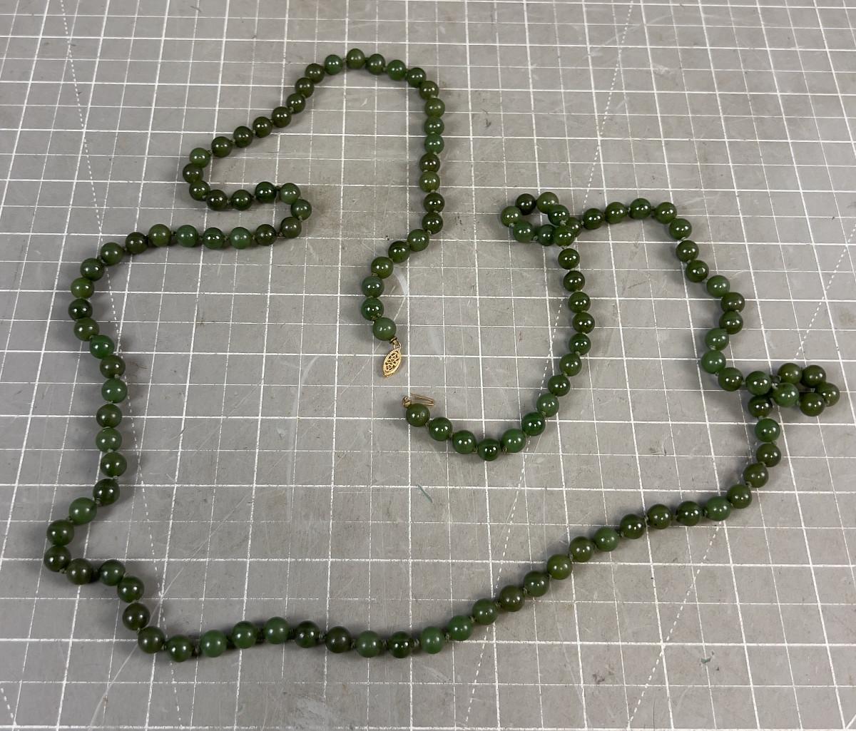 Round Jade Bead Necklace REAL DEAL! With 14K Clasp