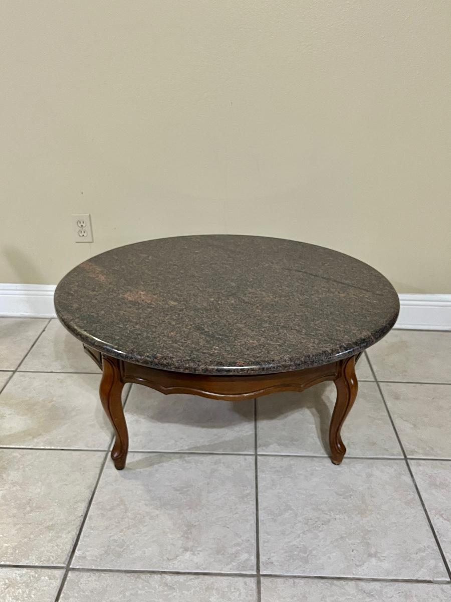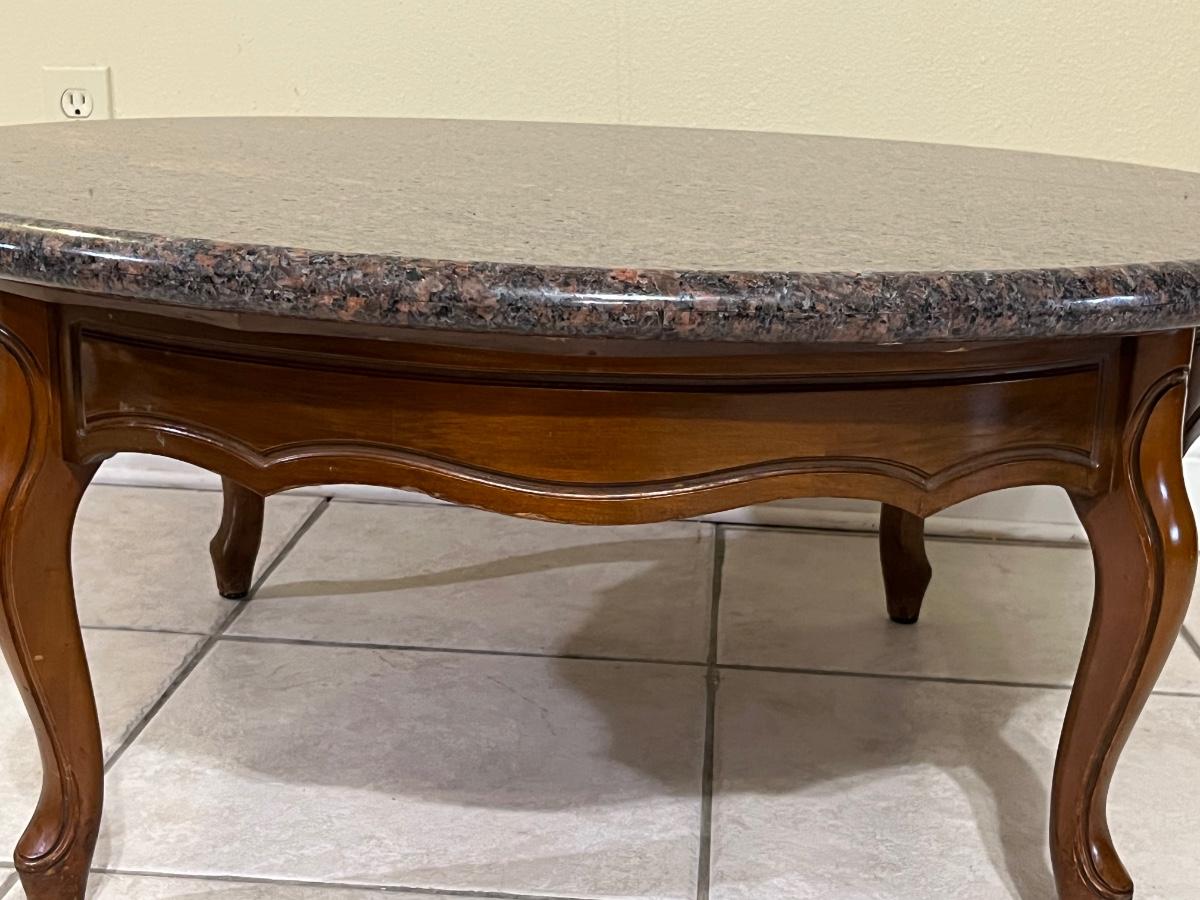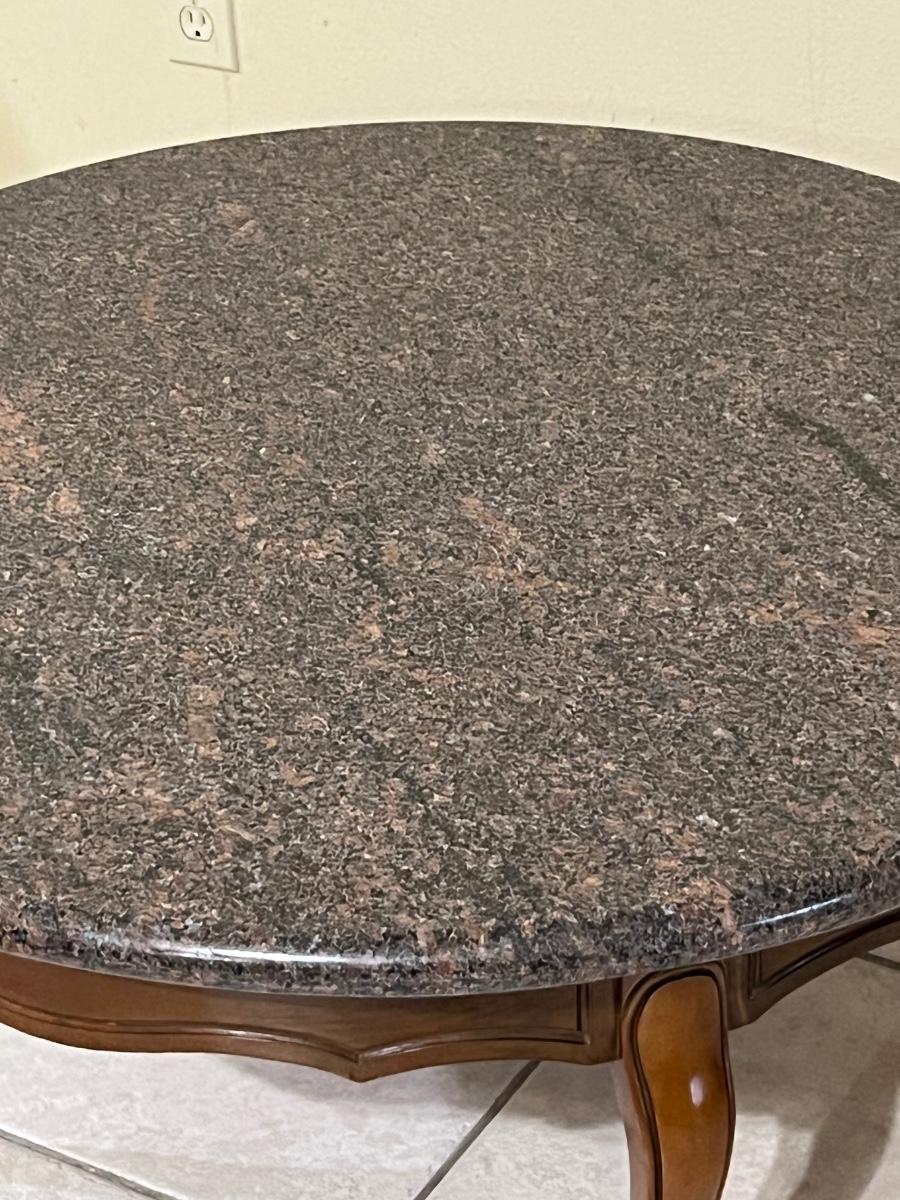 French Provincial Round Table ~ Granite Top ~ Wood Legs