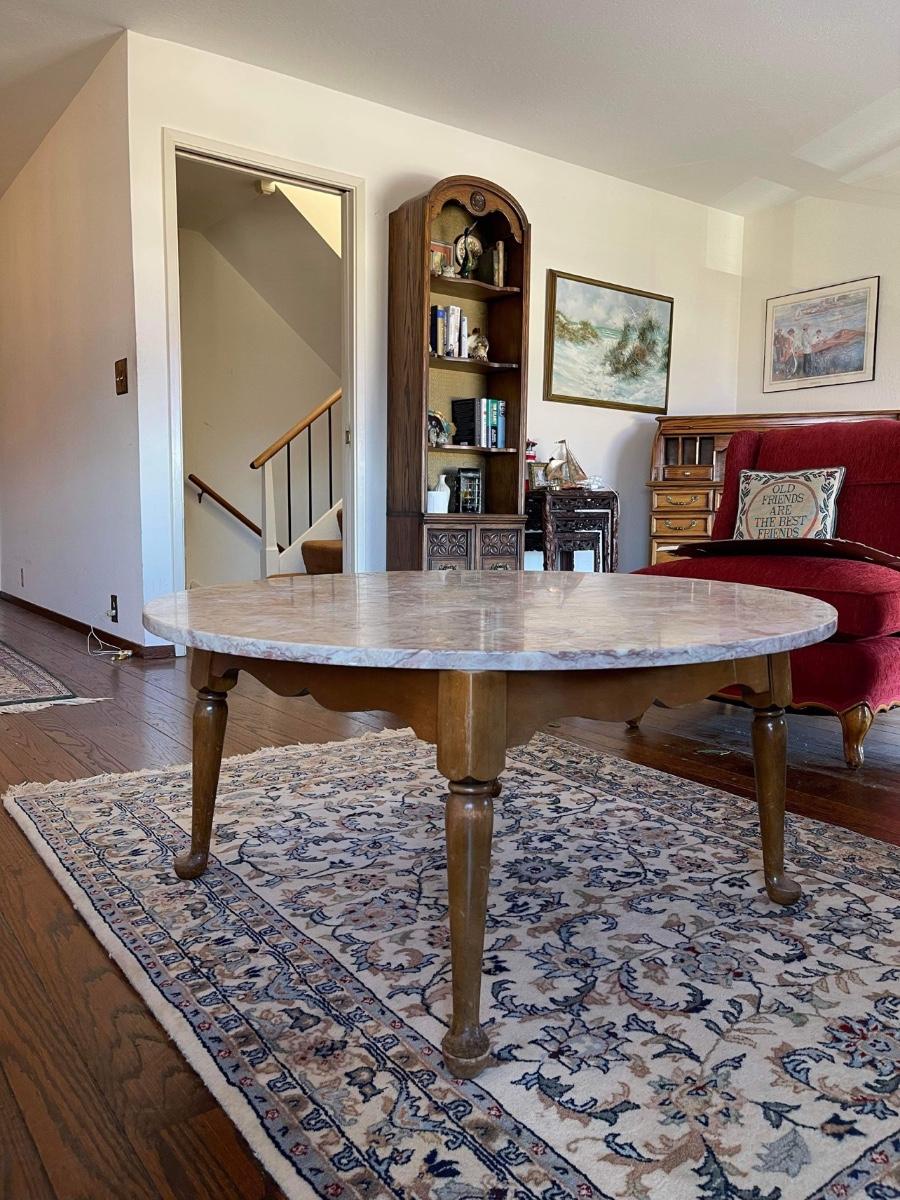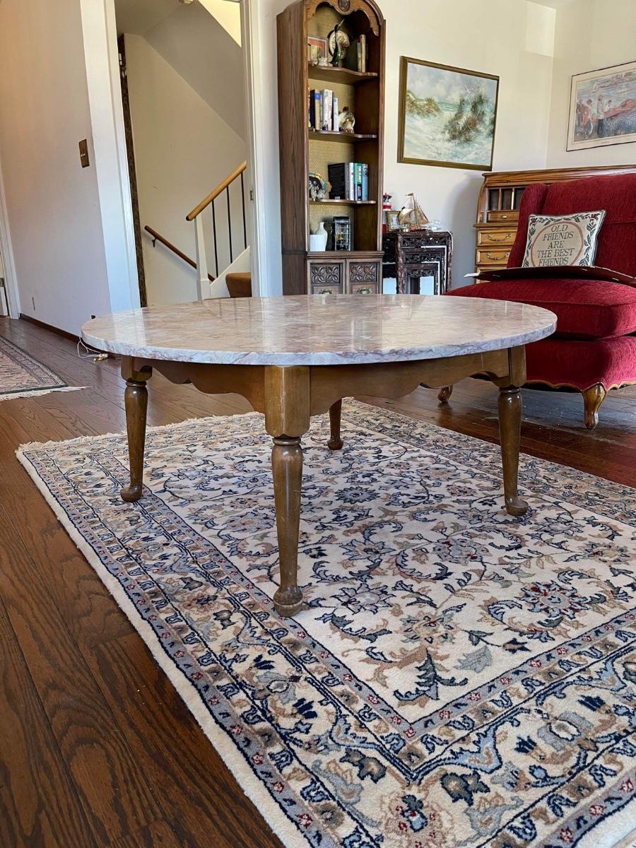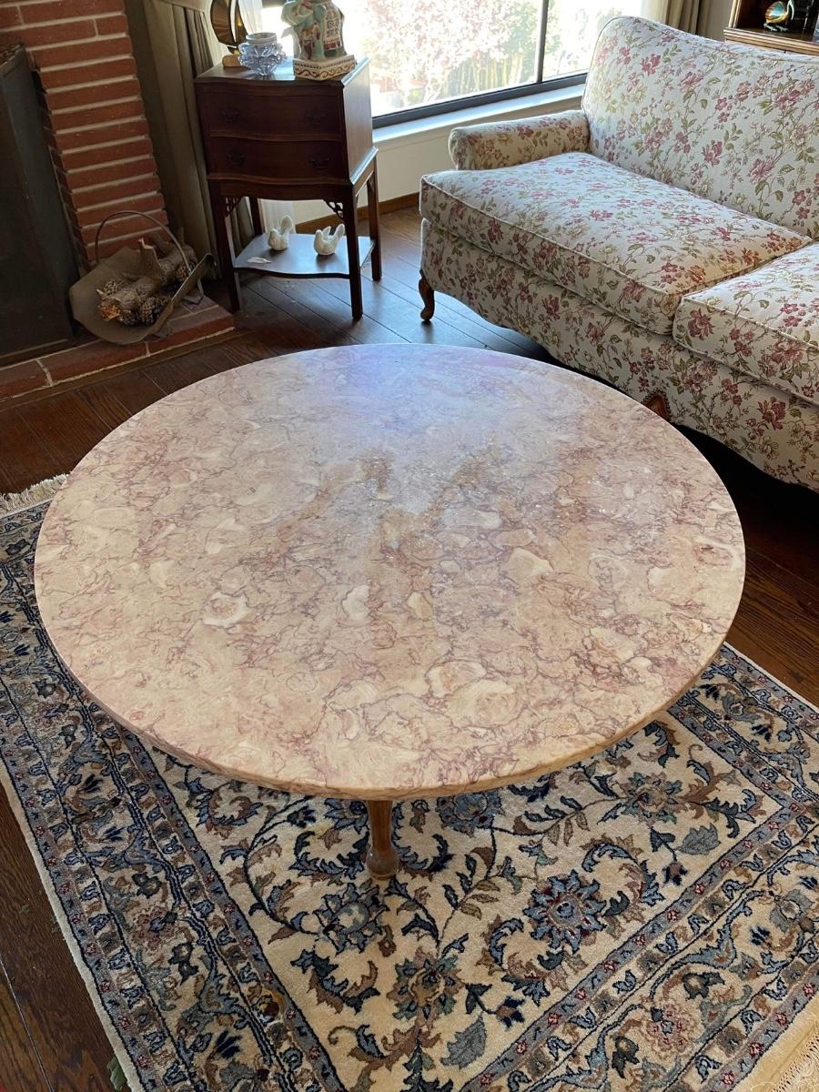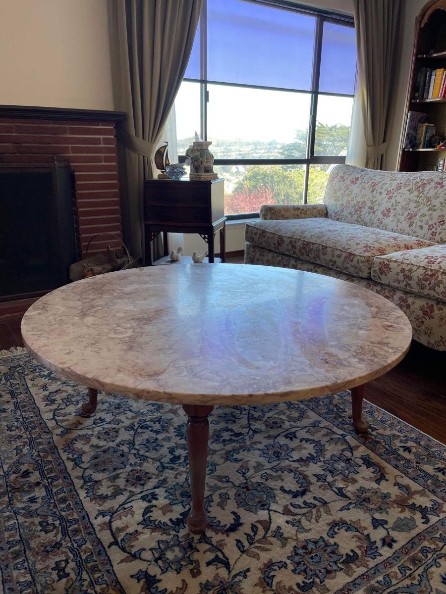Round marble-top coffee table