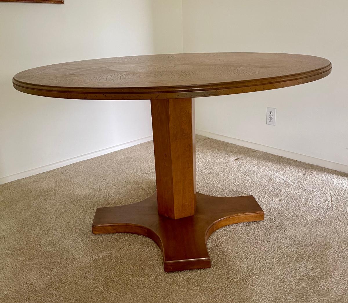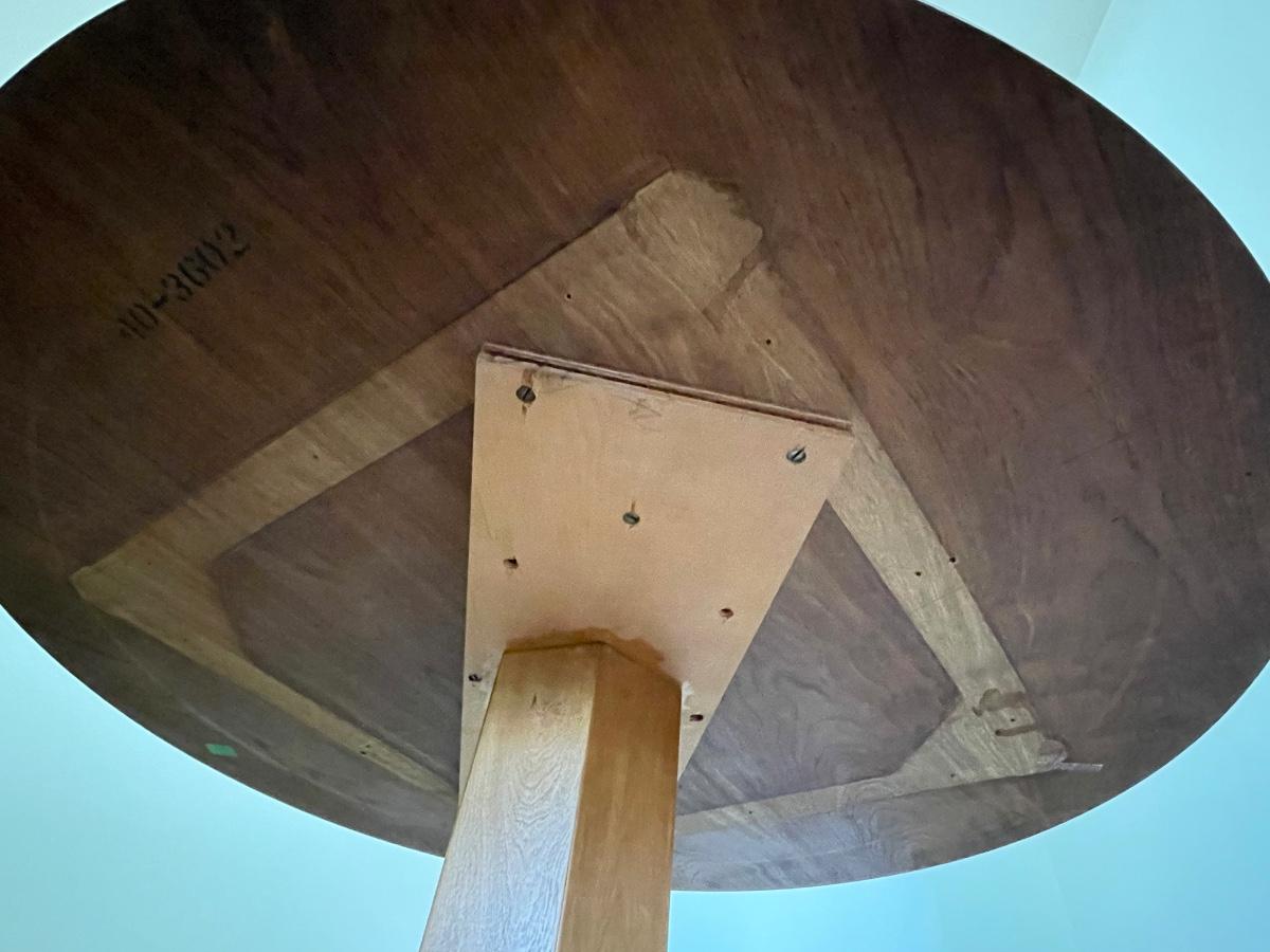Vintage Medium Finish Wood Pedestal Table Repaired - ARCADIA