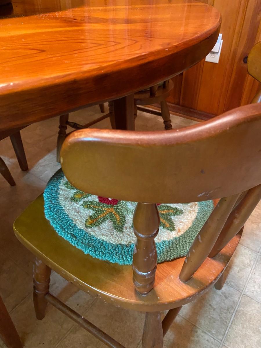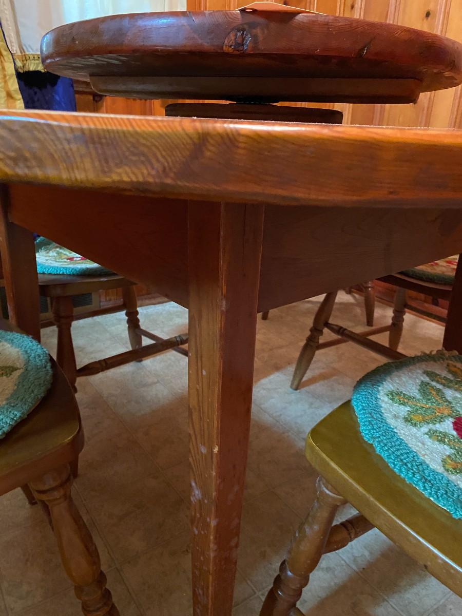 Round Pine Farm Table w/ 5 Maple Captains Chairs