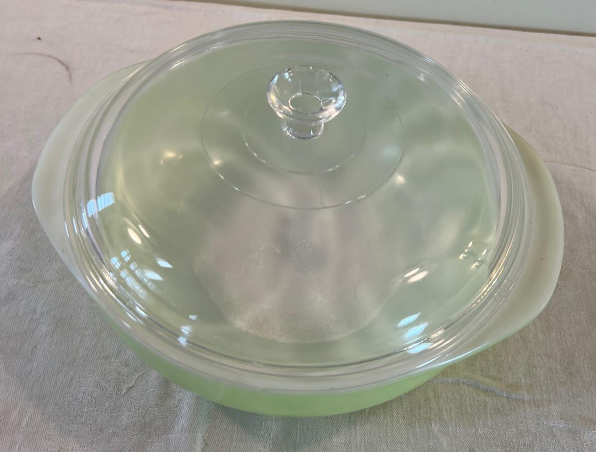 Round Pyrex 8" Green Bowl with Clear Lid