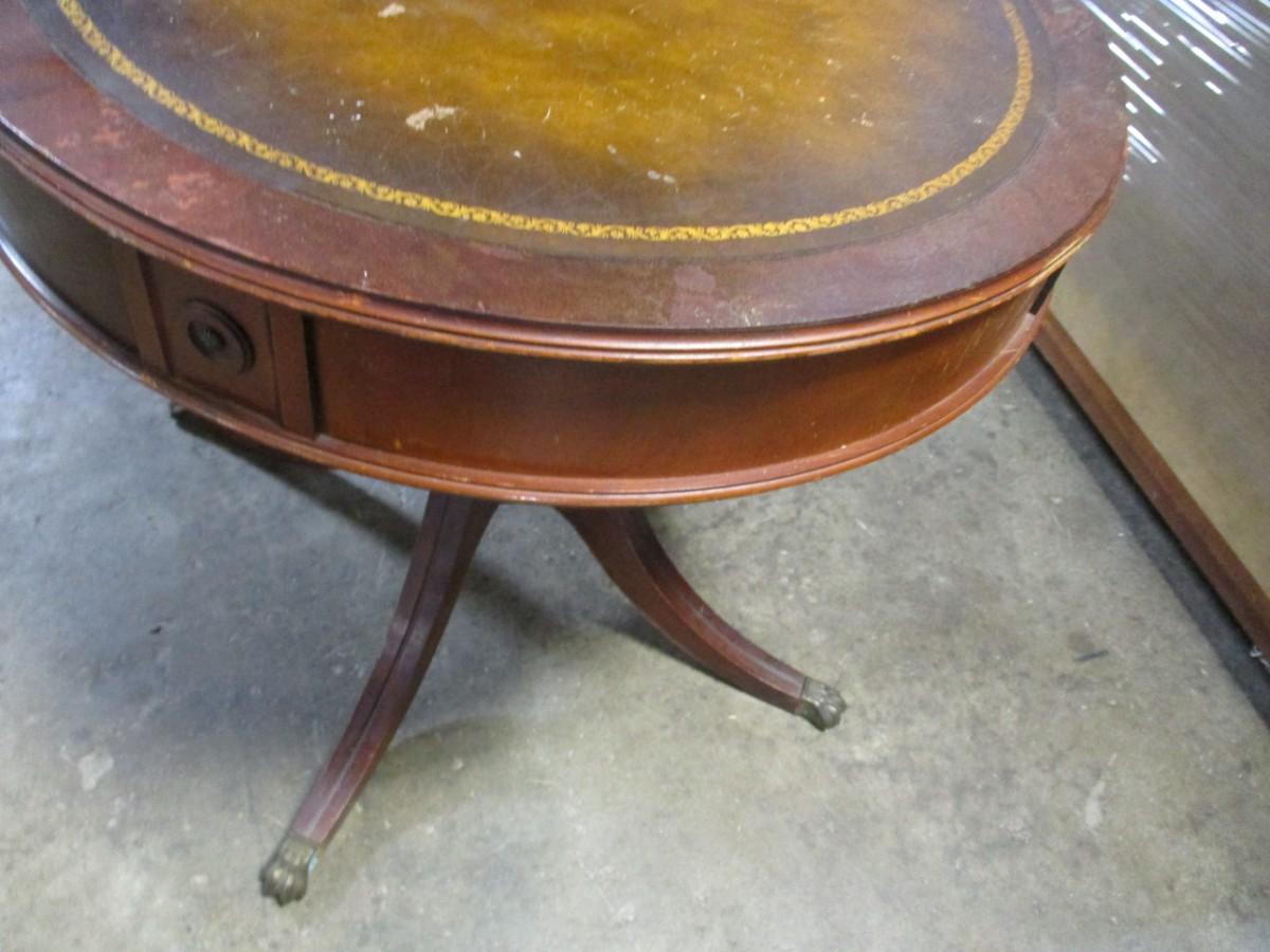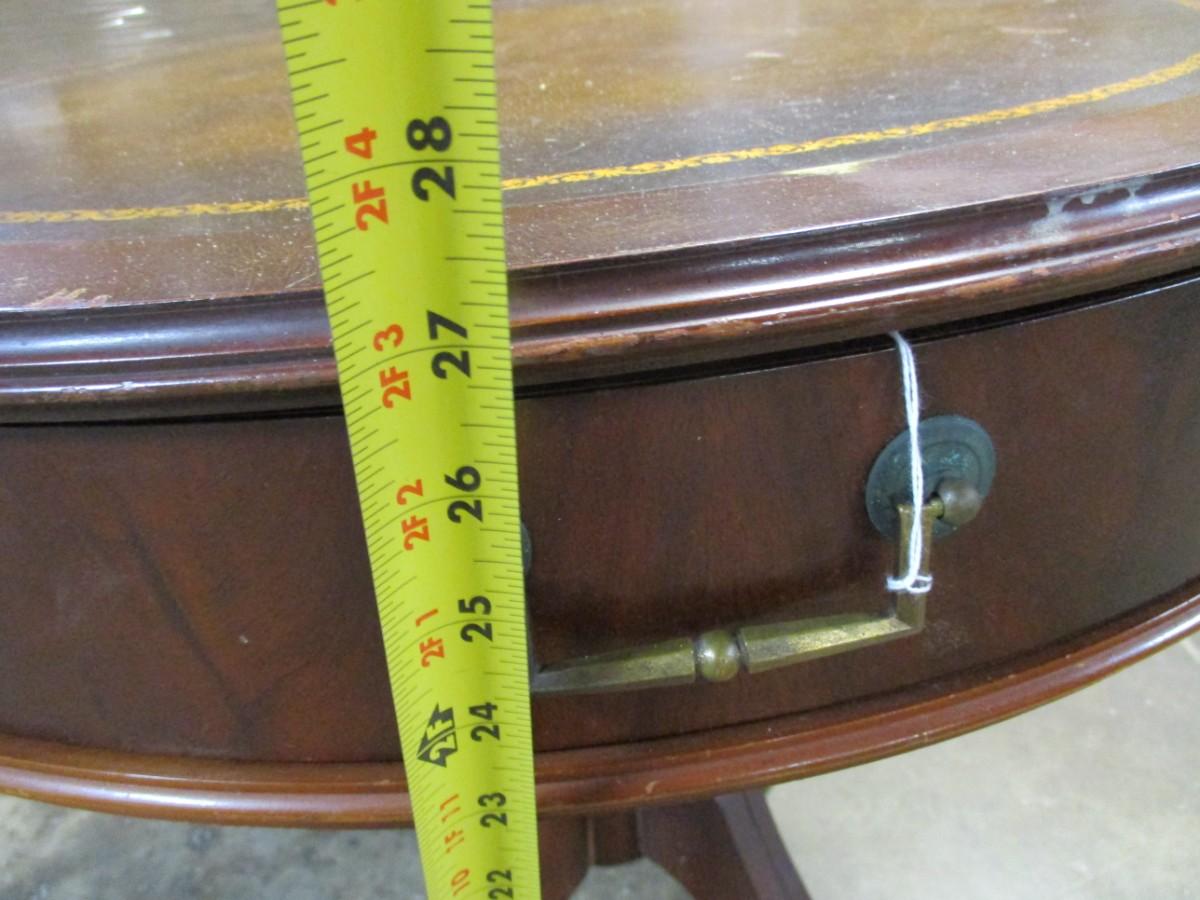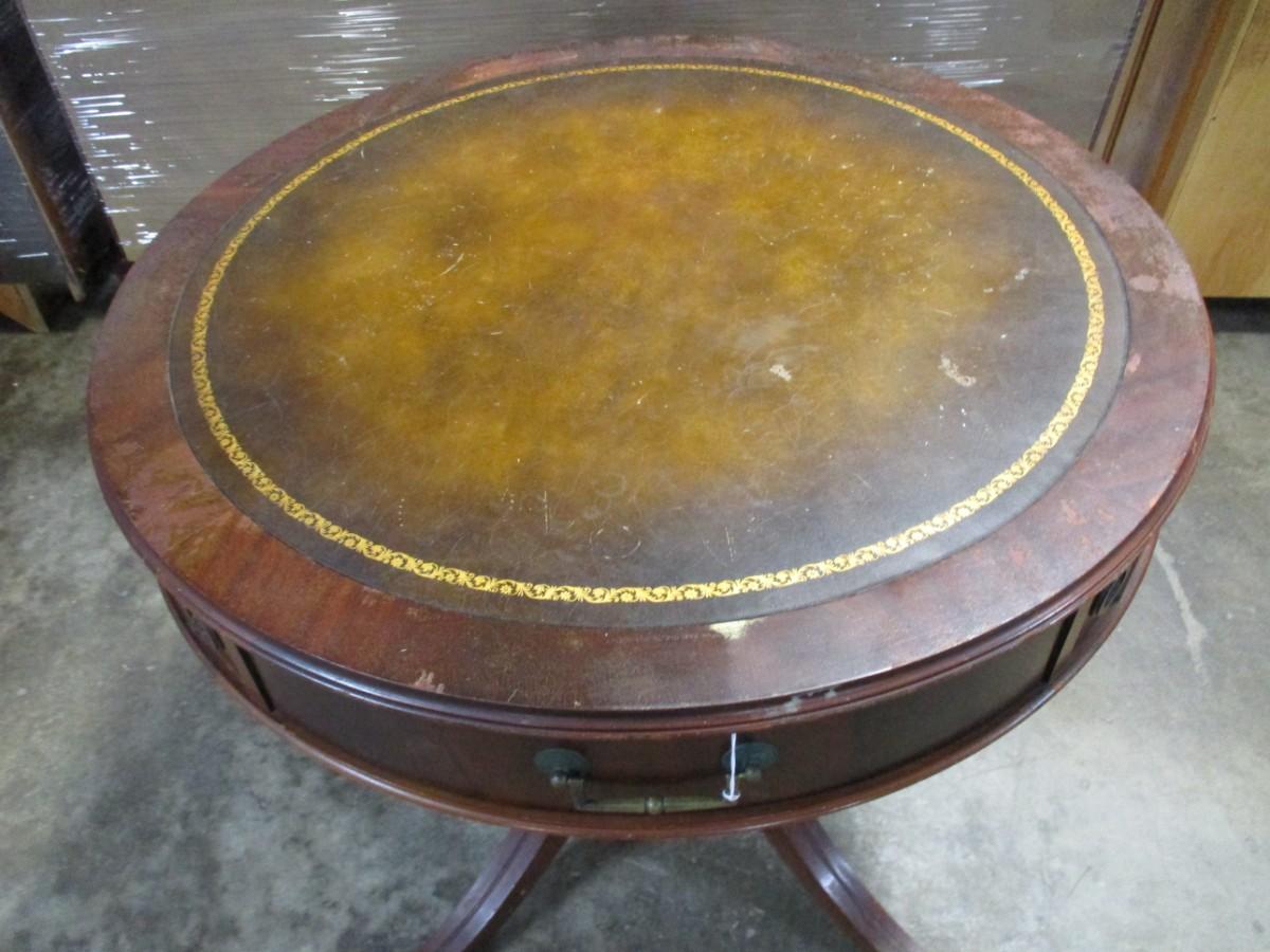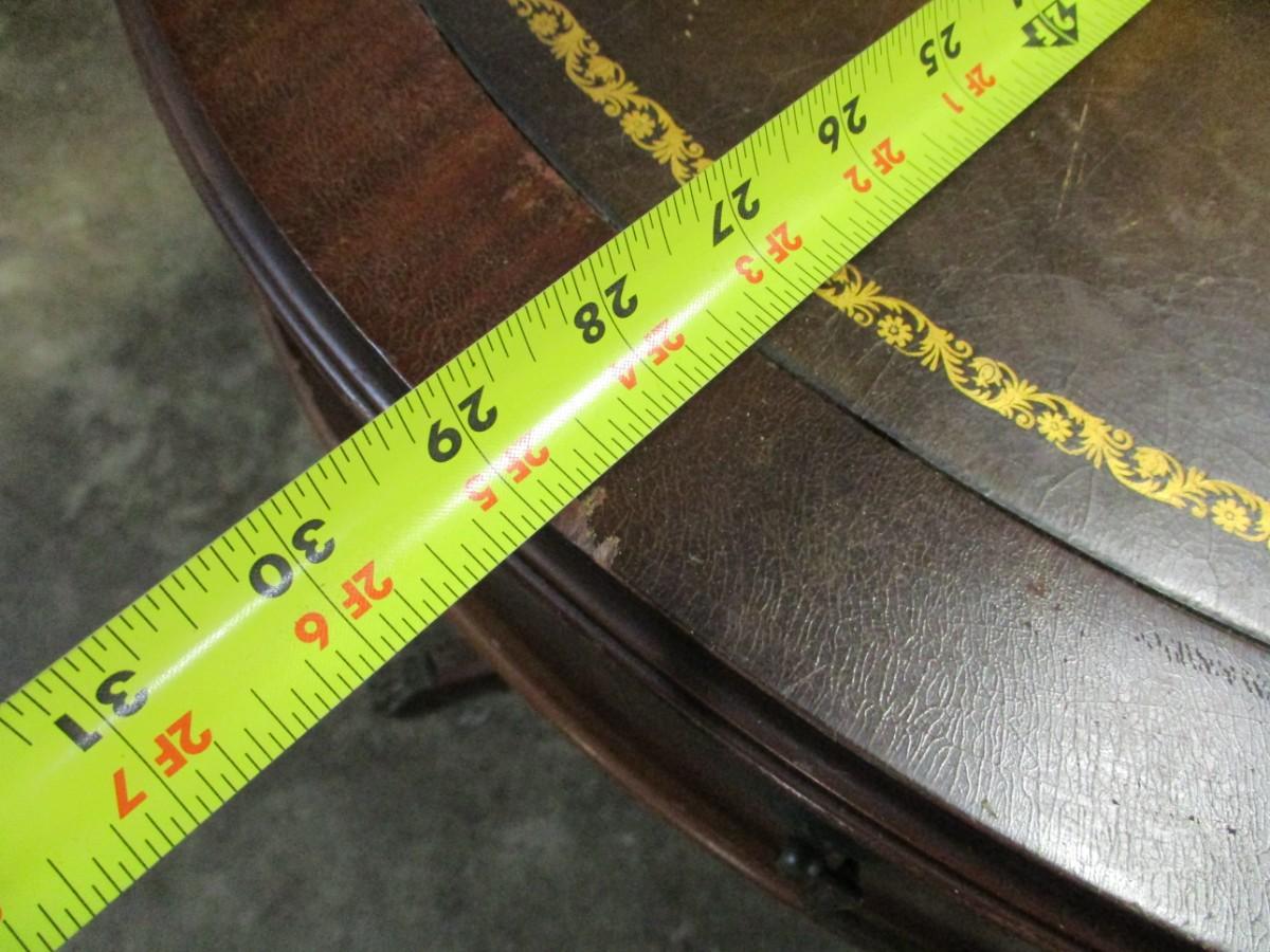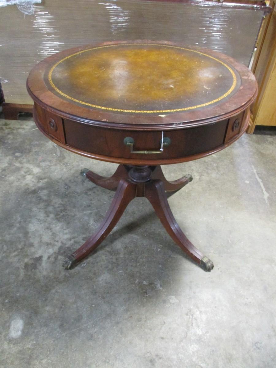 Vintage Duncan Phyfe Drum Table with Leather Top and Gold Embossing