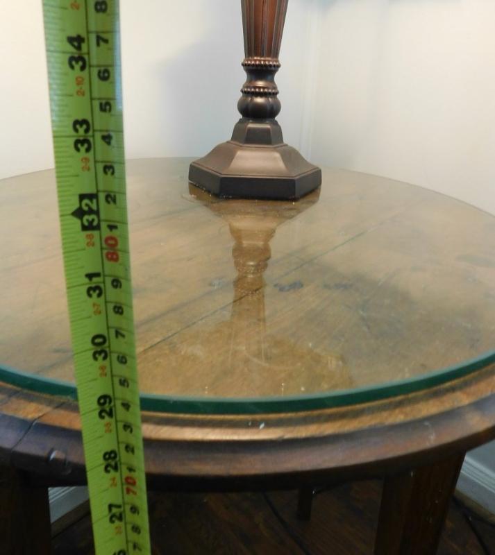 Round Solid Oak Wood Lamp Table with Glass Top 27" Diameter