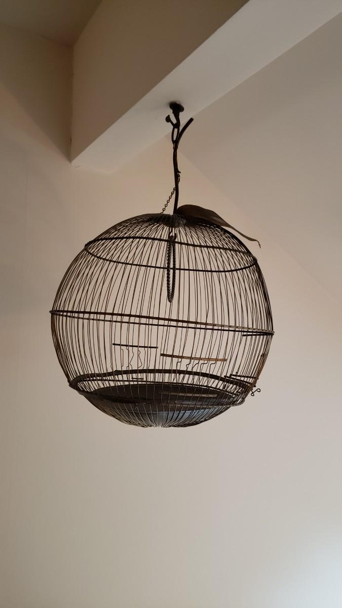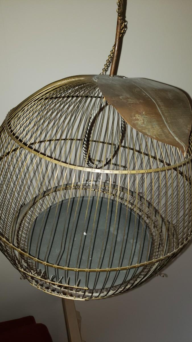 Round bird cage with leaf on top