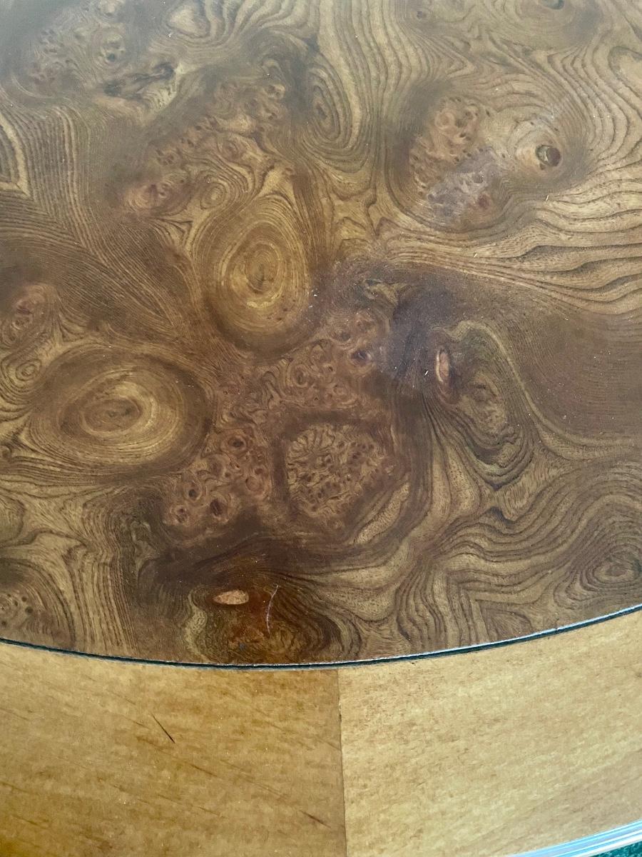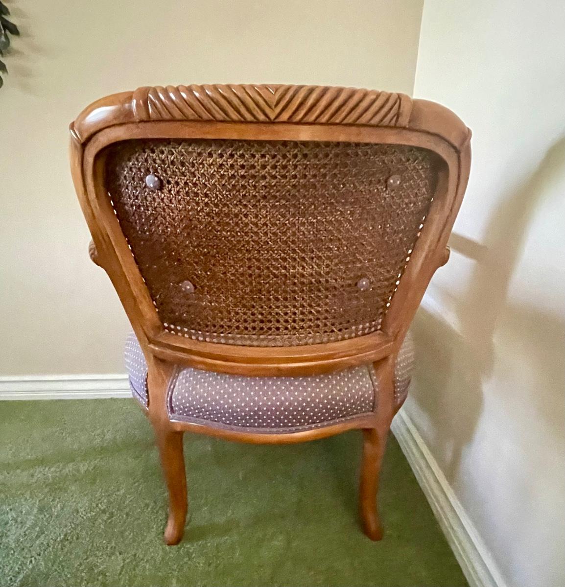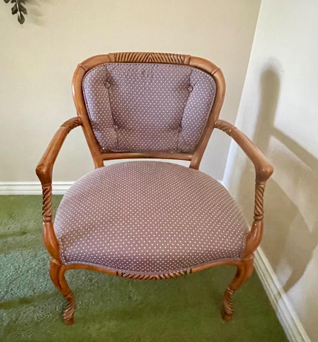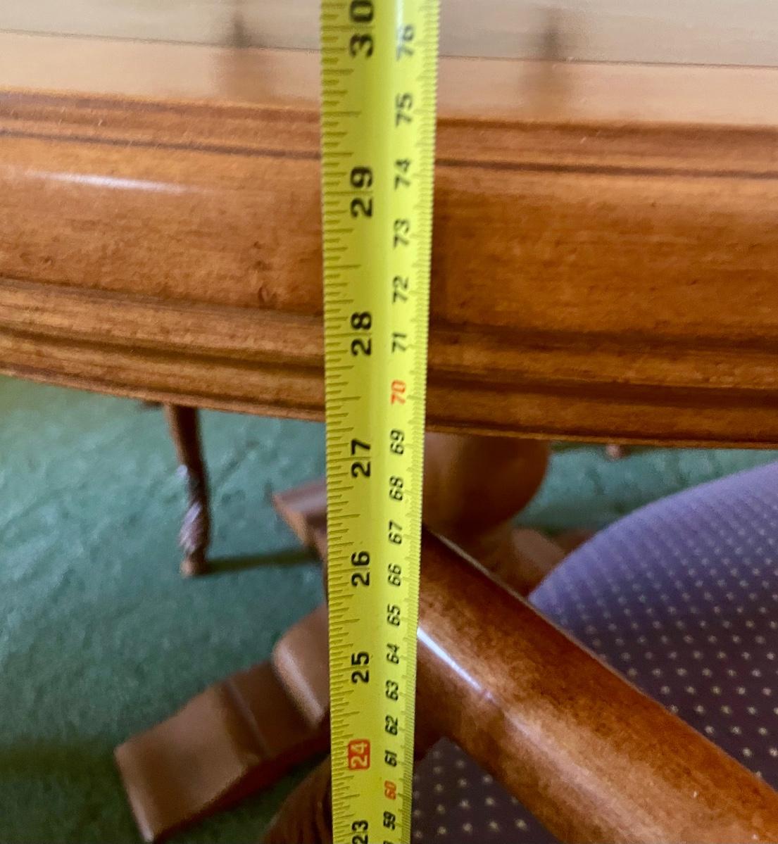 Table is one piece, approx. 48" across and 29" high. Chairs have upholstered seats and backs. Great condition.