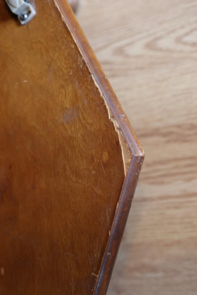 Has some wear but a sturdy piece, see pictures. No name markings.