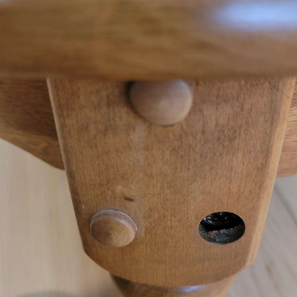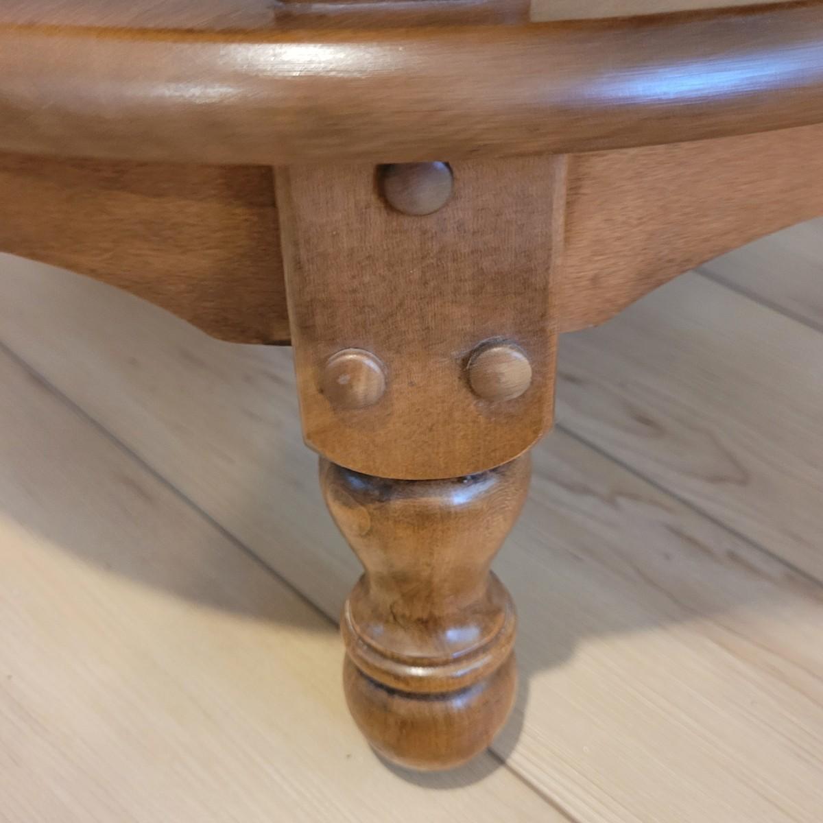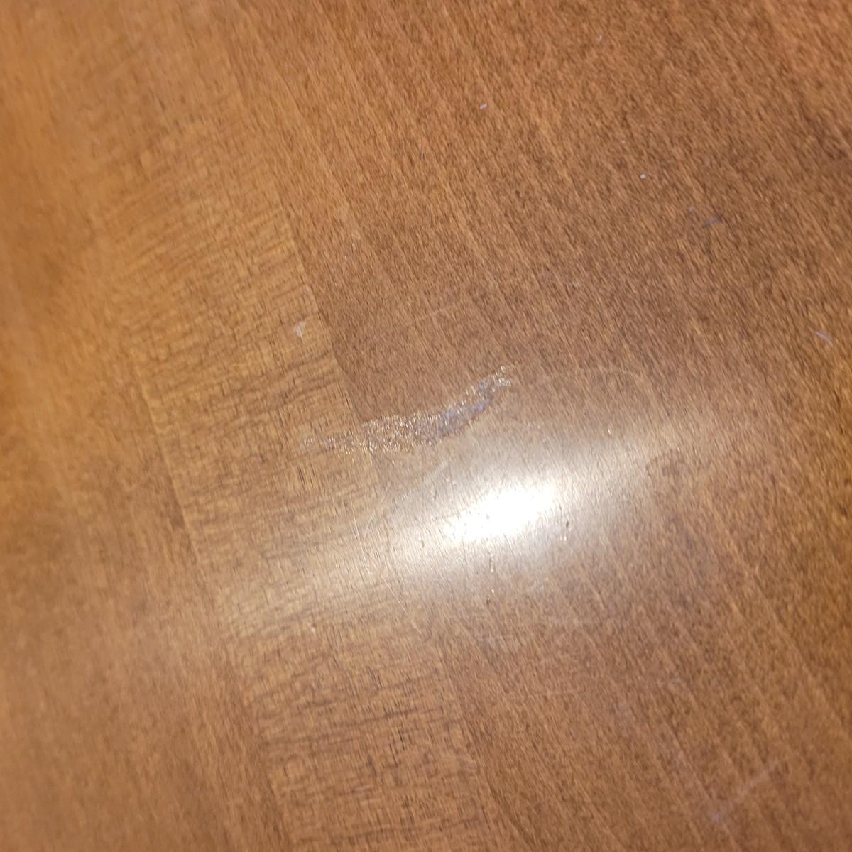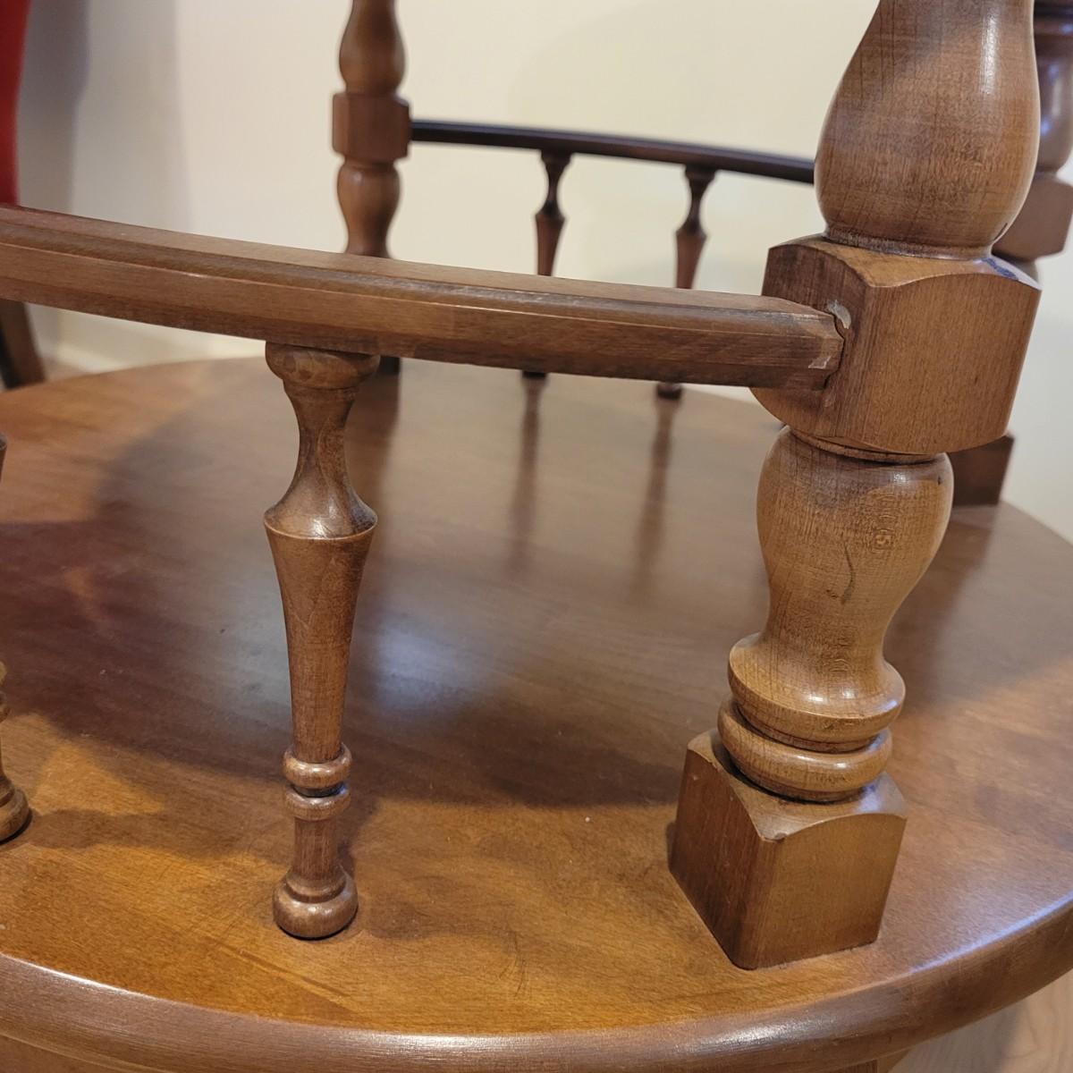 This sturdy solid wood side table by Columbia Manufacturing Co. has extra storage with a lower level. Minor scratches throughout (see photos). Measures approximately 26.5"D x 22"H. Local pickup only.